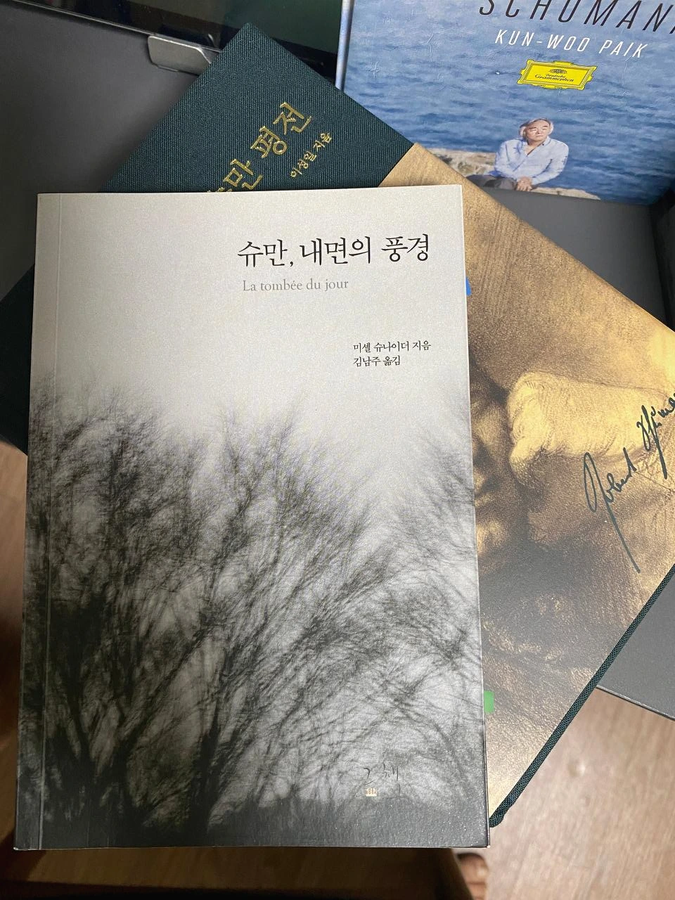 풍월당에서 출판한 이성일 작가의 슈만 평전은 그동안 막연하게 알고 들었던 그의 작품들을 새롭게 듣게 한 계기가 되었다. 슈만의 음악을 사랑한 작가의 애정이 두툼한 책에 고스란히 들어 독자에게 슈만을 사랑하게 하는 길잡이가 되어준다. 마치 어두운 숲길에서 만나는 별들처럼. 작가는 여전히 그의 음악을 들으면 가슴을 뛰게 한다고 했다. 그의 음악을 듣고 가슴이 뛰지 않았다면 아마 살아있지 않았다고 할 만큼 그의 청춘과 인생에 살아갈 힘이 되었다고 한다. 그의 자유로운 정서로 내면의 심연에서 슈만과 조우하는 무한한 기쁨과 행복감을 느끼는 삶. 슈만이 우리에게 주는 선물이라는 생각이 든다.