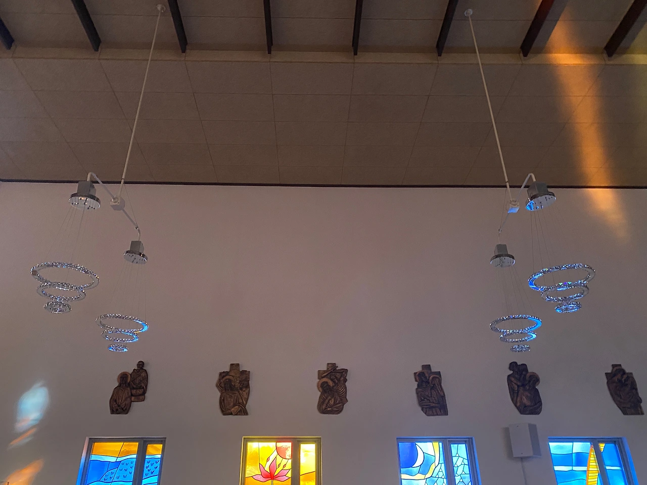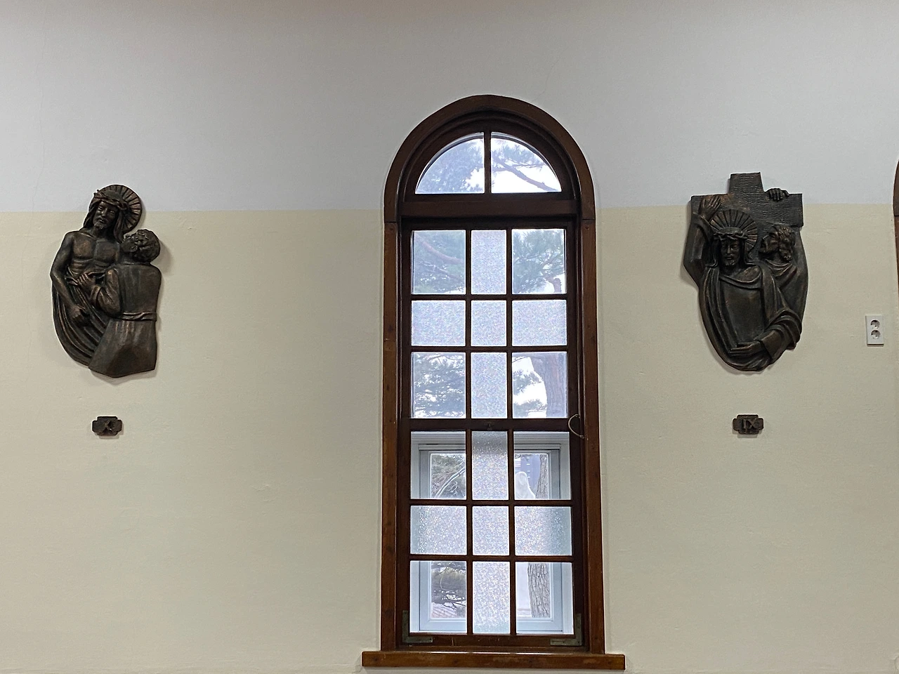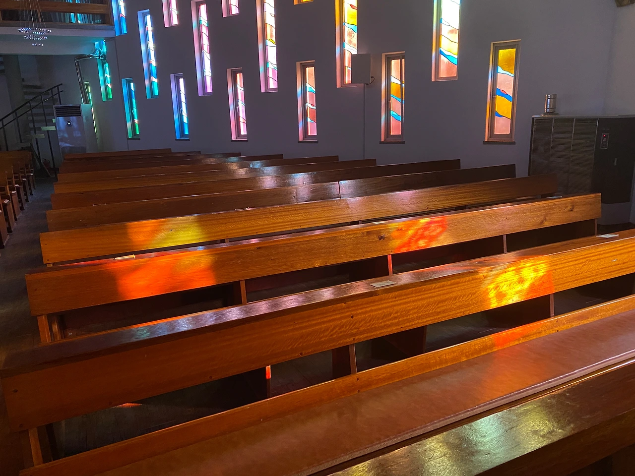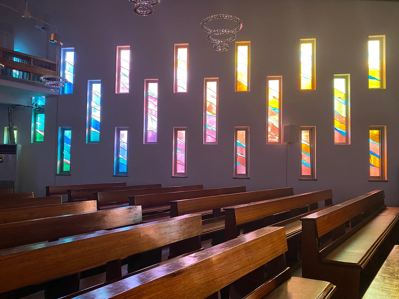 양측으로 난 창문엔 스테인글라스로 장식하지 않고 단순하게 투명도를 이용한 창이 소박해 보였습니다. 제대 양측에 스테인 글라스를 제외하고는 특이한 장식이 없는 담백한 모습의 성당이었지만 전체적으로 아름답다는 인상을 지울 수 없는 성당입니다. 그곳에서 참석한 미사 역시 오래도록 기억에 남을 듯한 시간이었습니다. 매번 느끼는 것이지만 한주일에 쌓인 수많은 상념들을 위로하는 말씀. 그 말씀을 묵상하는 가운데 어쩔 수 없는 연약함이 고스란히 위로받고 마음을 새롭게 다잡는 시간이 되게하는 은혜의 시간이었습니다.