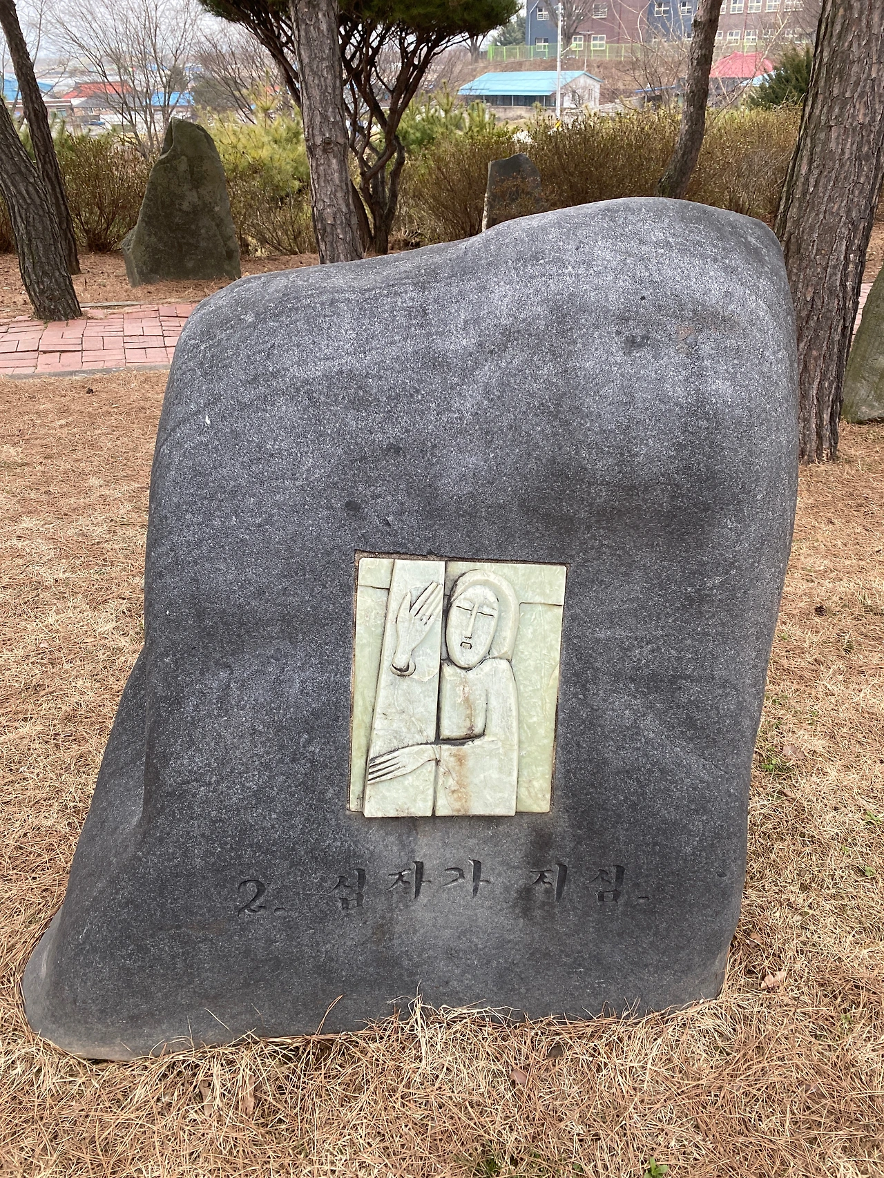 밖으로 나와 오솔길을 따라 야외의 십자가의 길을 걸었다. 십자가의 길 14처도 각 성당마다 독특하다. 합덕성당은 부조형식으로 되어있는데 그 부조가 사뭇 예술적이었다. 아마도 누군지는 모르지만 대단한 조각가가 만든 예술품일 거란 생각이 들었다.