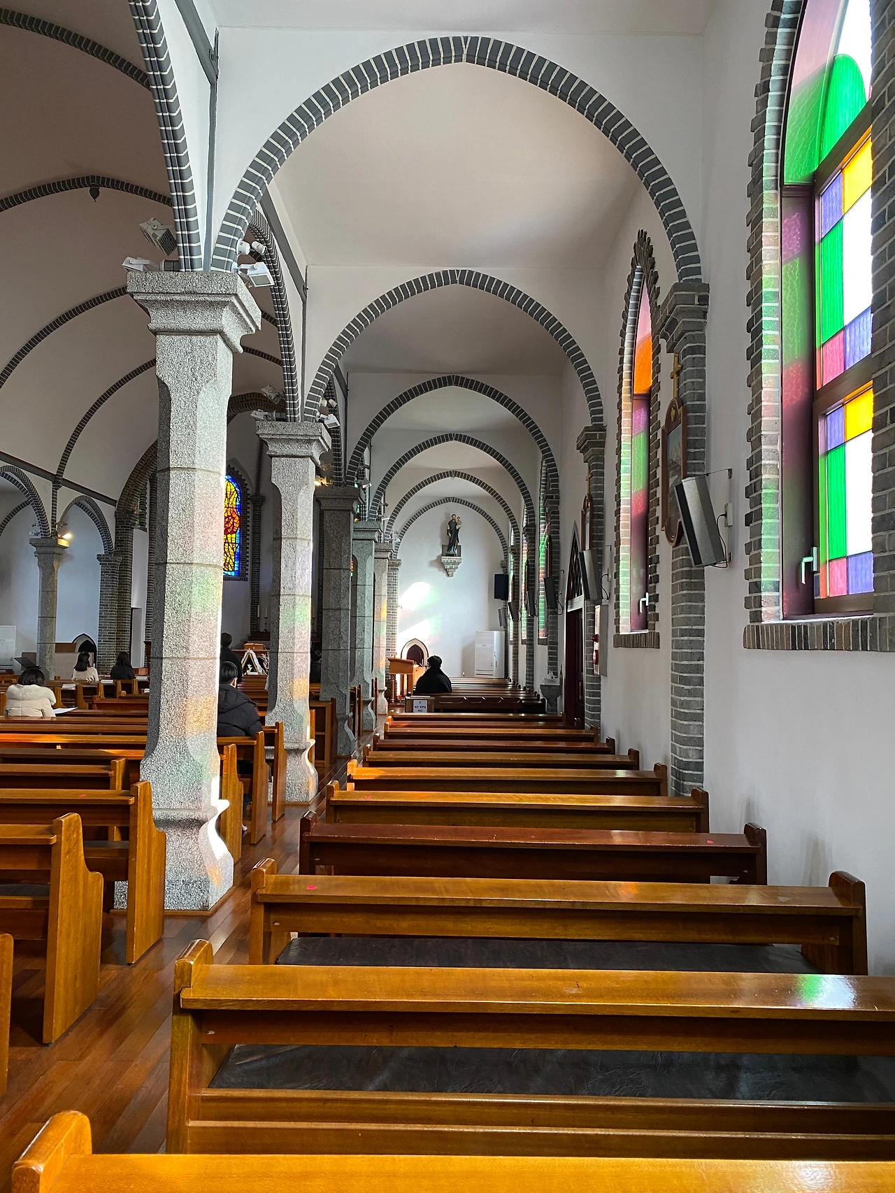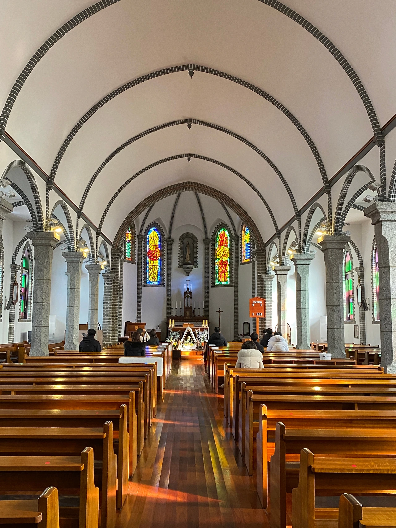 성당내부는 돔형 천정과 스테인 글라스, 그리고 12개의 석조기둥이 아름답게 조화를 이루고 있었다. 경건함, 신이 사는 신의 집일 수 밖에 없는 곳에서 한 것 초라해진 자신을 자리에 앉힌다. 침묵할 수밖에 없는 그곳에서 살아온 지난 날을 묵상하고 내 속에 있는 당신의 숨결을 묵상했다.