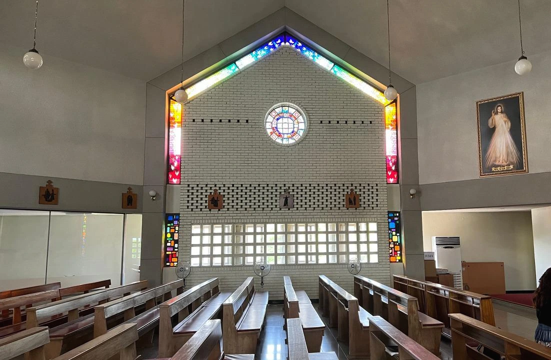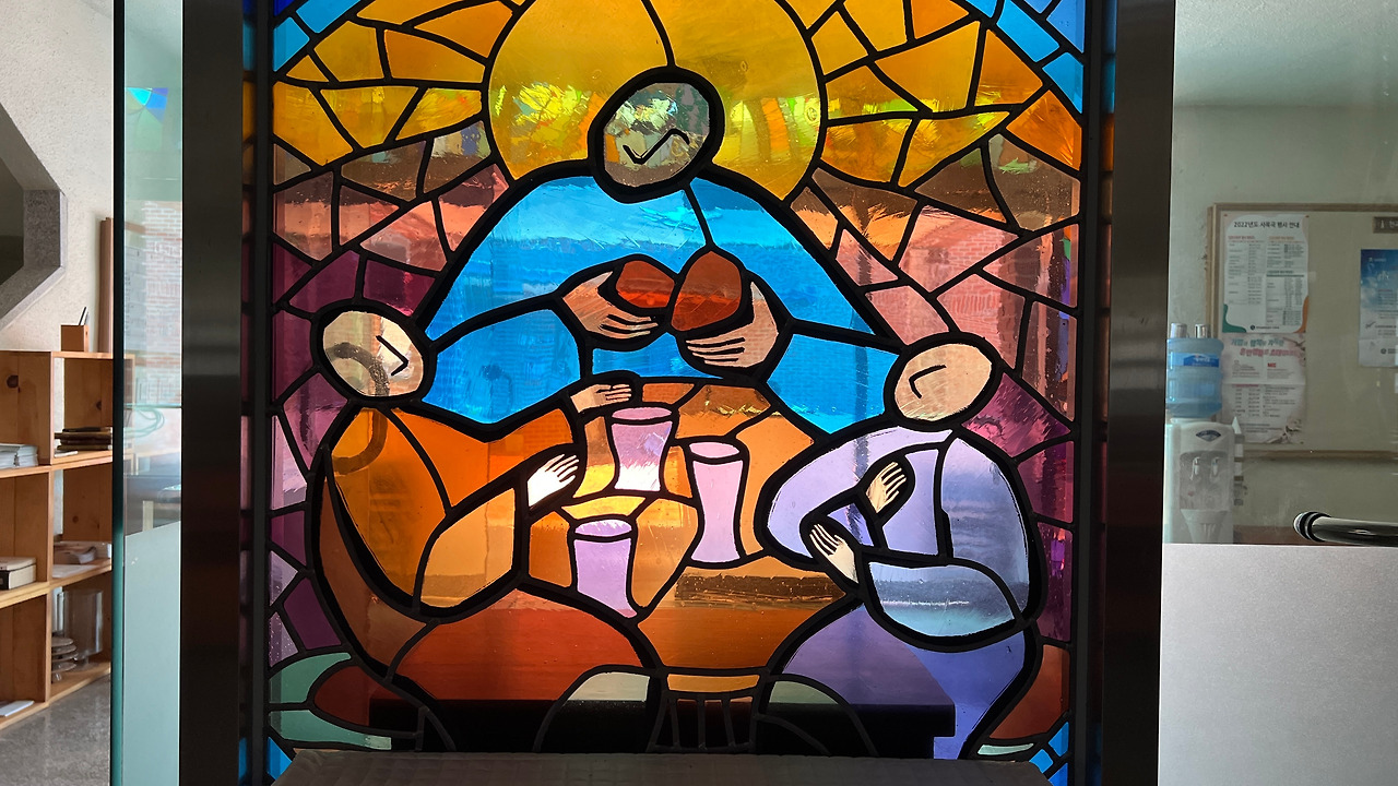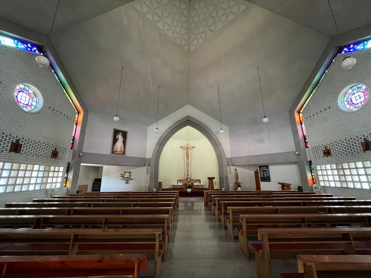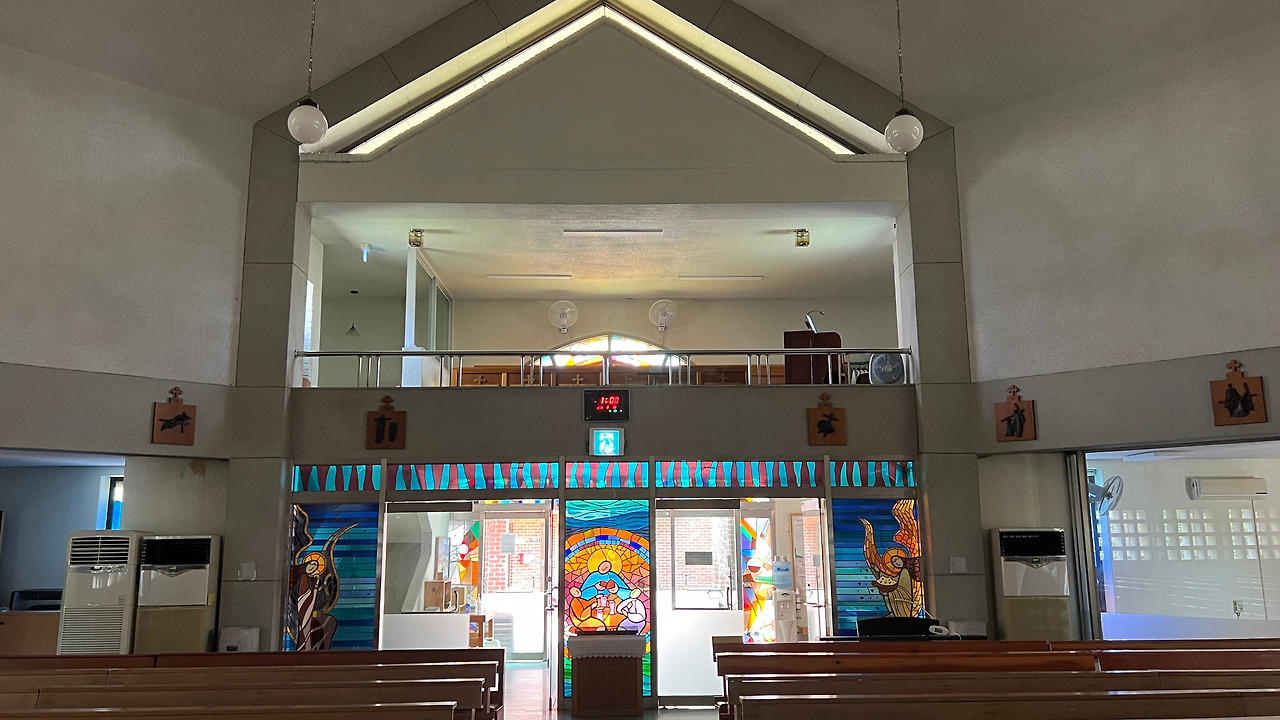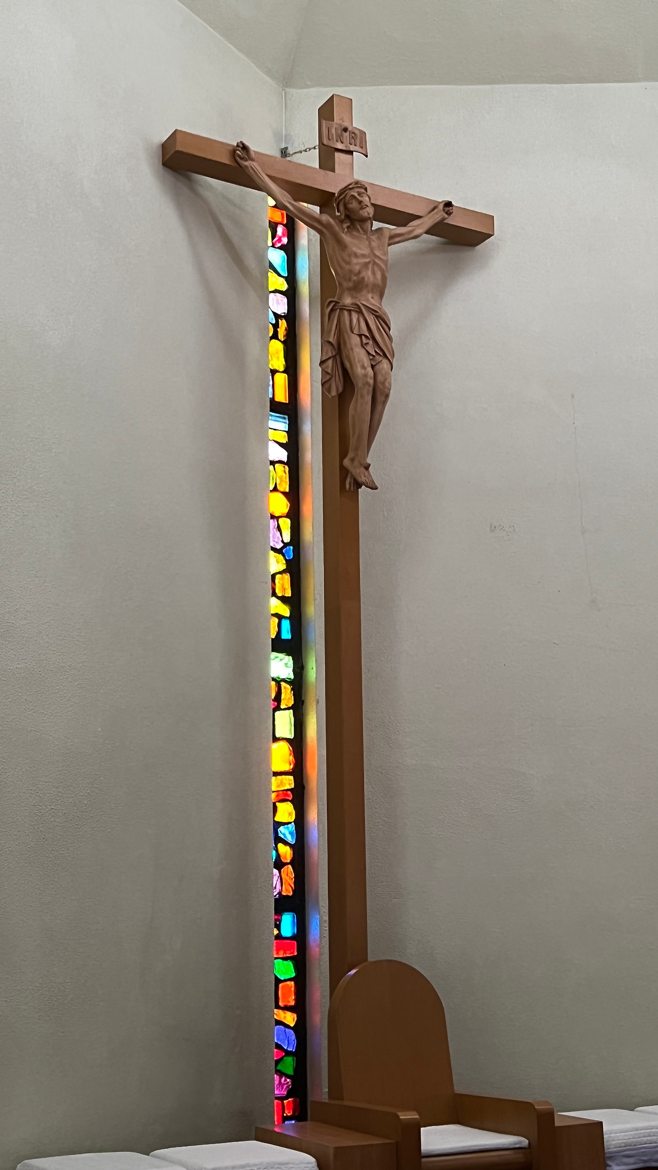 닫힌 문을 열고 들어가니 스테인글라스를 통해 들어온 햇살이 오묘한 색으로 성당내부를 비추고 있었다. 십자고 상뒤의 빛이 오묘하다. 맨 앞자리에 앉아 십자고상을 올려다보며 기도한다. 내 삶을 송두리채 들썩대게하는 지친 시간들에 대한 자기고백에 이어 옳바른 삶으로의 회기를 소원했다. 믿음이 없어 세상가치만을 좆아가는 못난 탕자의 고백도 이어졌다. 텅빈 성당에서 오로지 그분과 나만 있는 느낌. 그분은 빛으로 어루만져 주셨고 회복될 삶을 십자고 상의 눈과 상처를 통해 위로해 주셨다.