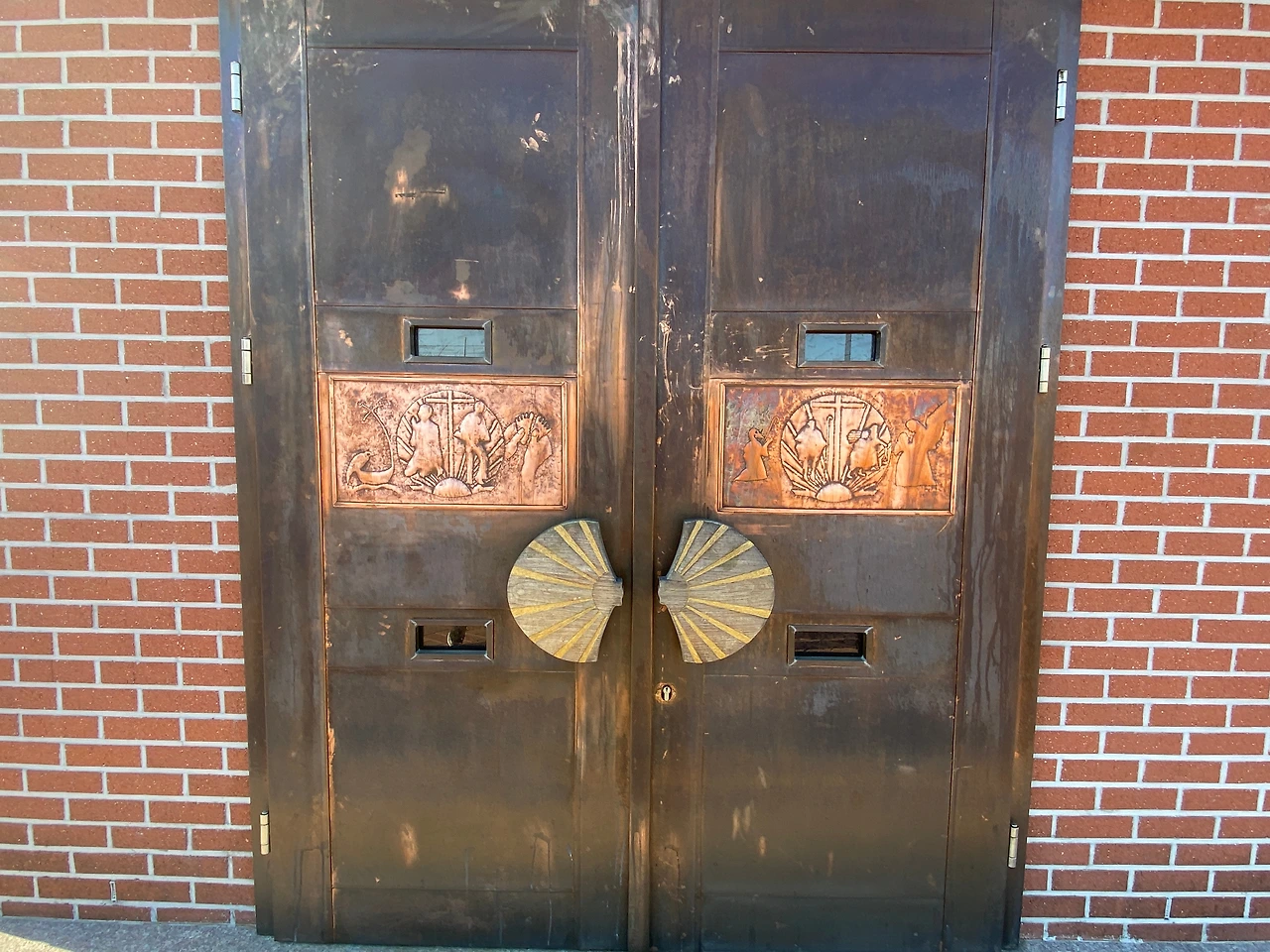 성인 성야고보 : 본당 수호성인이 예수님의 열두 제자 가운데 하나인 ‘사도 성 야고보’다. 성인의 상징이 조가비다. 유럽 대륙의 남서쪽을 이루는 이베리아반도에 복음을 전한 야고보 사도의 시신을 옮기던 중 바다에 그만 빠트리고 말았는데, 조가비들이 성인의 몸을 덮어 보호해줬다는 이야기가 전해진다. 이후 조개껍데기를 매단 지팡이를 짚고 야고보 사도의 유해가 모셔진 산티아고를 향한 순례자들의 발길이 이어졌다. 그 길이 ‘산티아고 순례길’이다.