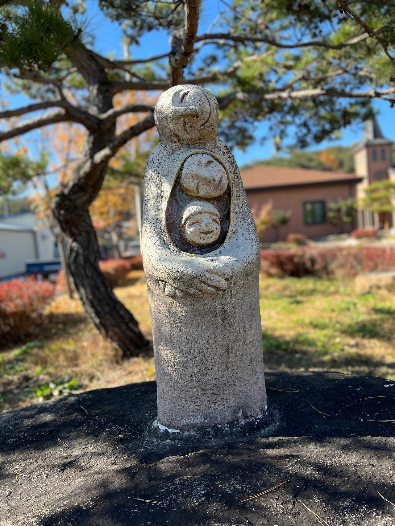 여행길, 계획되지 않았던 장소에 우연히 들리게 되면 거의 대부분 기분 좋은 여행에 훌륭한 덤이 됩니다. 아시아 최대 규모의 백두대간 수목원 가는 길에 우연히 이정표를 발견하고 들리게 된 춘양성당. 춘양성당은 안동교구 소속으로 봉화군 춘양면에 있는 고딕 양식의 제법 규모가 있는 성당이었습니다. 넓은 대지에 우뚝 세워진 성당 입구에 들어서면 춘양성당을 알리는 커다란 석물이 있고 그 뒤로 조그만 정원에 입꼬리를 흐뭇하게 올라가게 만드는 성가정상이 방문객을 반갑게 맞아 주었습니다.