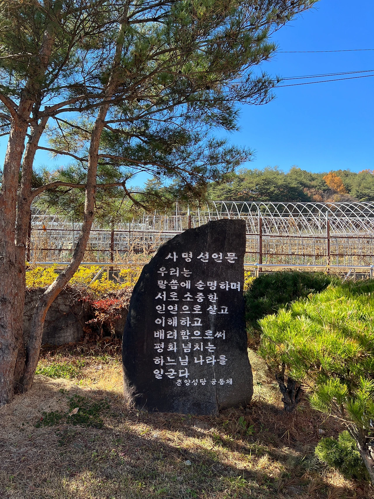 우리는 말씀에 순종하며 서로 소중한 인연으로 살며 이해하고 배려함으로써 평화 넘치는 하느님 나라를 일군다. 춘양 성당 사명선언문입니다. 신앙공동체의 순전한 마음을 읽을 수 있었습니다.