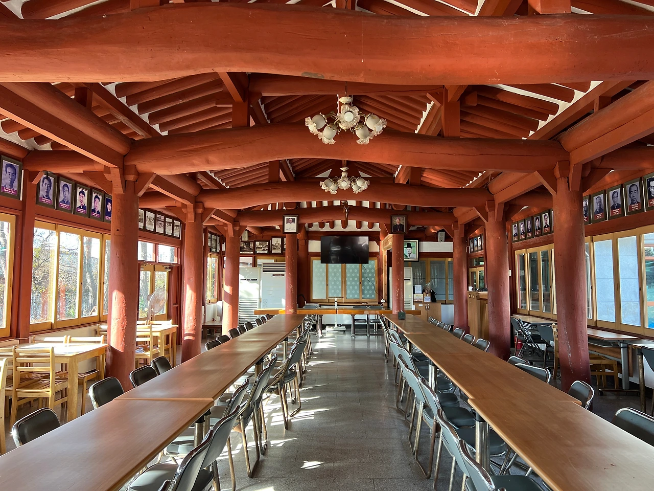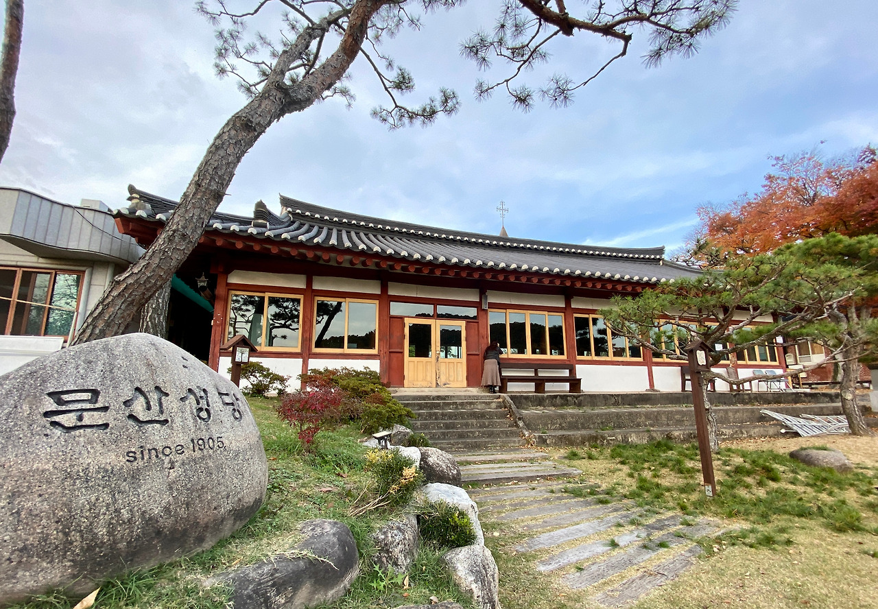 경상남도 진주시 문산에는 한옥성당과 고딕 성당 두 개가 한자리에 조화롭게 세워진 성당이 있습니다. 문산성당입니다. 문산성당의 한옥성당은 1923년에, 서양식 고딕 양식의 성당은 한옥성당의 오른쪽으로 조금 위쪽에 자리를 잡고 1937년에 지어졌습니다. 14년을 간격으로 지어진 두개의 성당은 우리나라에서 가톨릭이 토착화되는 과정을 보여주는 성당이기도 합니다. 문산성당의 입구에 들어서면 먼저 한옥성당이 보입니다. 가로로 길게 자리 잡은 성당은 한눈에 보아도 상당히 큰 기와 건물입니다. 한옥으로 지어진 성당으로는 규모면에선 제법 큰 것 같아 당시 미사참석 신자가 어느정도 되었을지 가늠되기도 하였습니다. 평소에는 문이 잠겨있었지만 두 번째 방문인 이 날은 미사가 있는 주일이라 개방되어있었습니다. 굵은 서까래와 오래된 기둥들이 묵직한 기와지붕을 오랜 세월에도 잘 받쳐주고 있었습니다. 현재는 고딕성당을 본당으로 하고 한옥성당은 강당으로 사용하고 있다고 합니다.