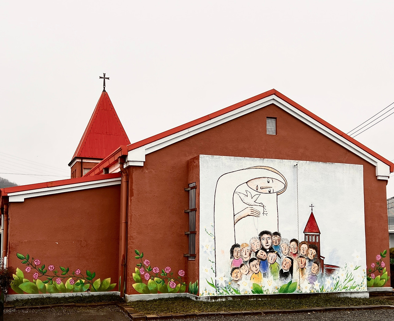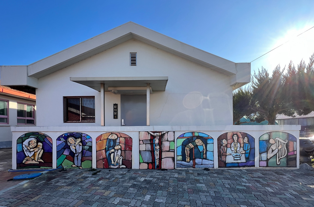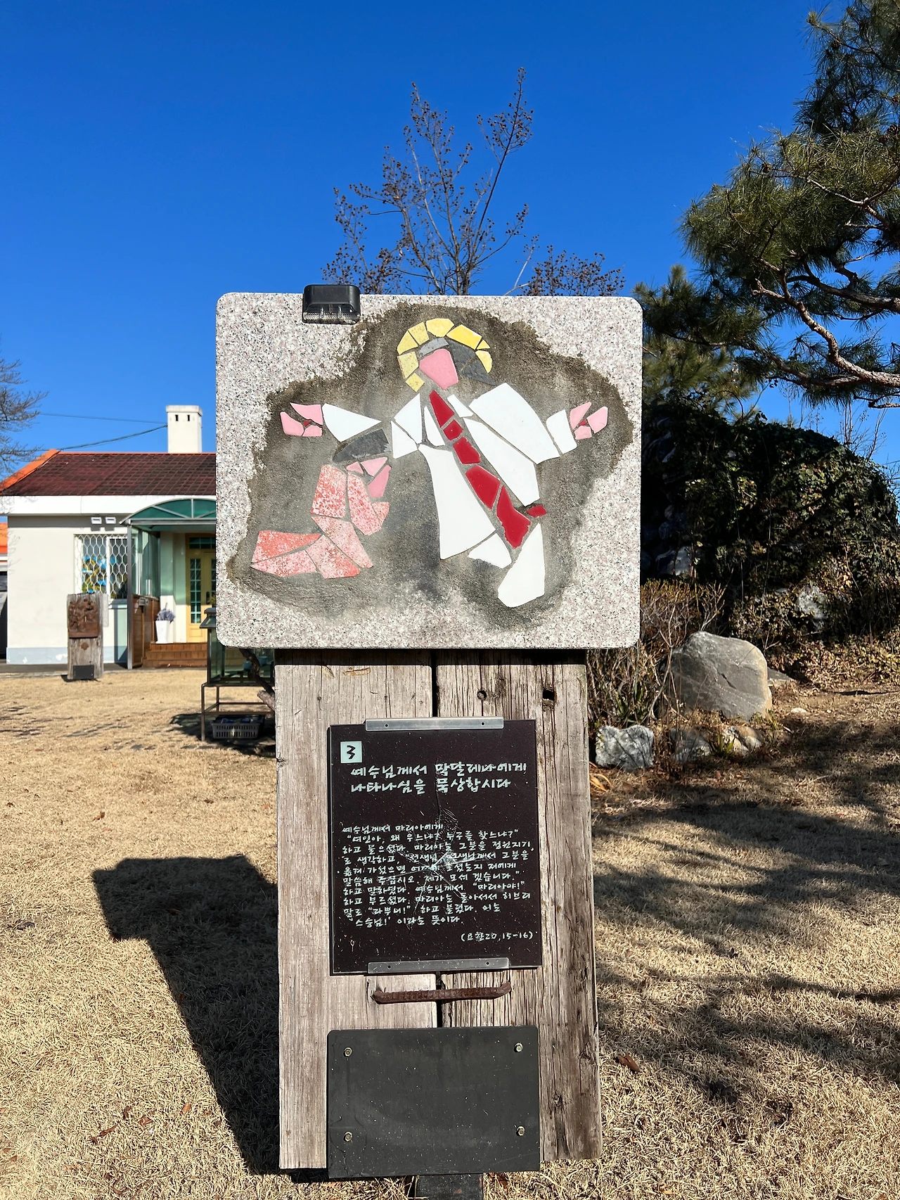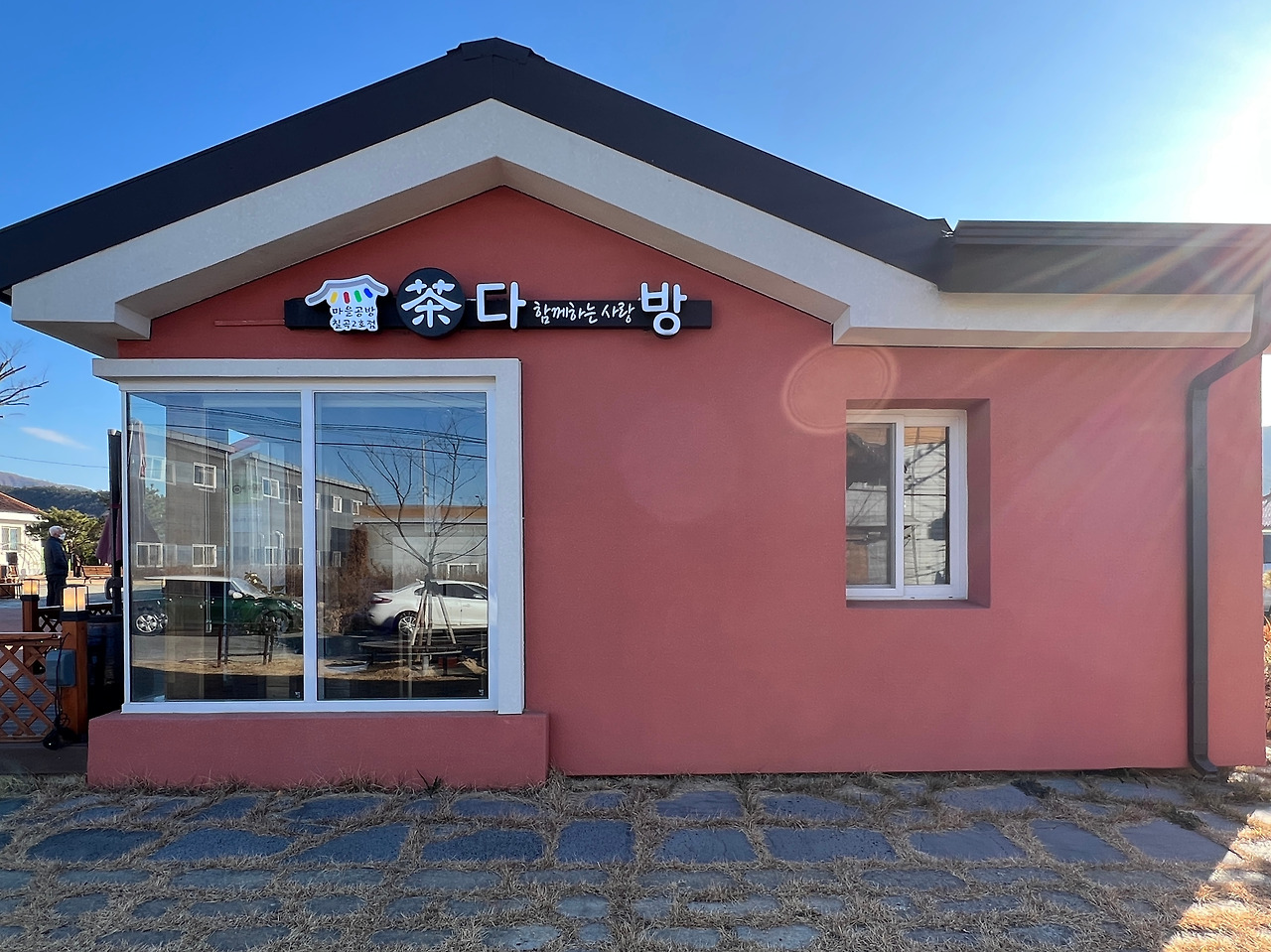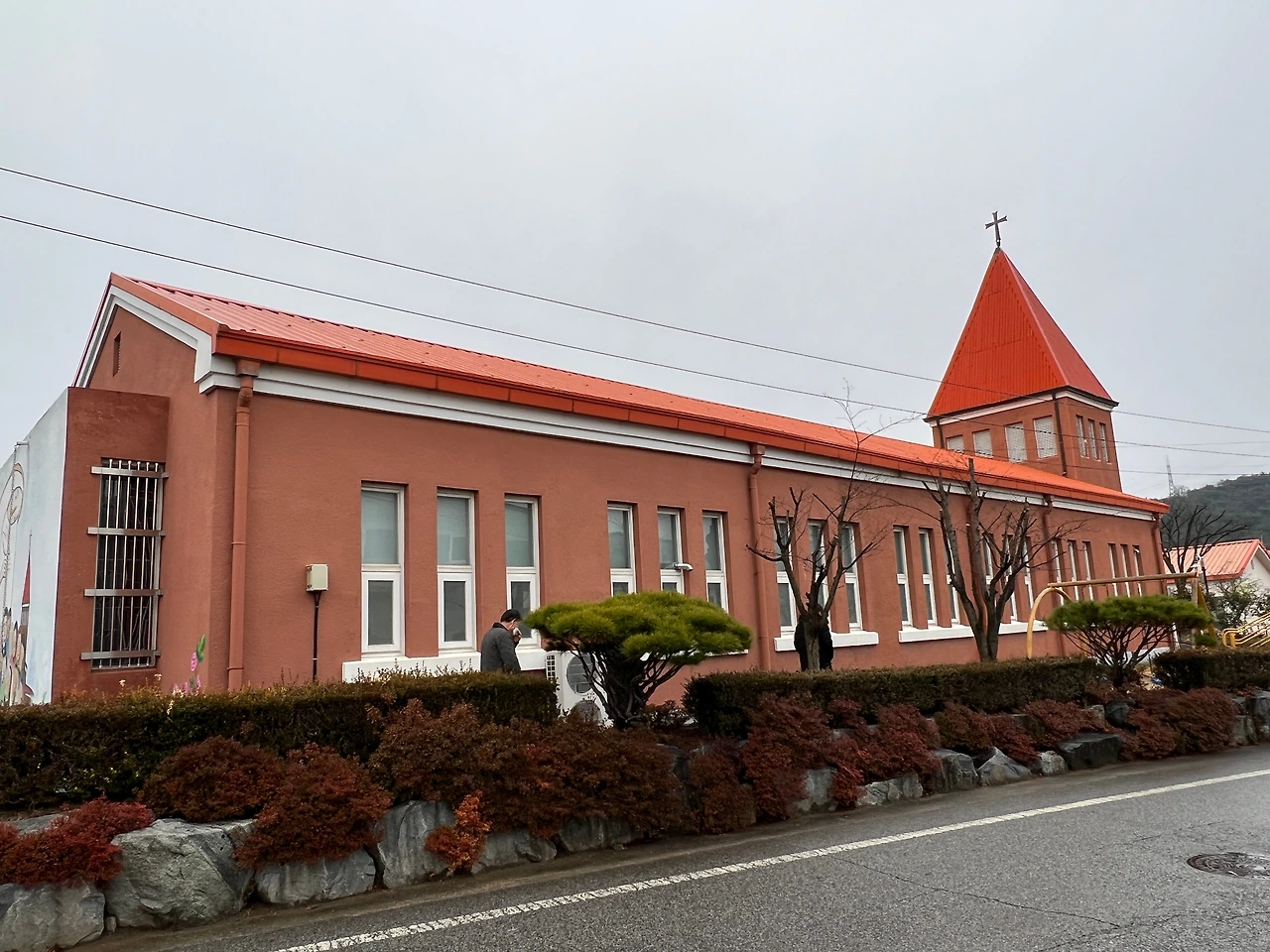 이른 아침부터 교중미사에 참석하기 위해 서둘러 신동성당으로 발길을 향합니다. 입구에 들어서면 붉은 색 첨탑과 지붕이 아름다운 성당이 보입니다. 입구엔 신동성당을 알리는 바위가 현판을 대신합니다. 입구 옆에는 다함께 하는 사랑방이라는 의미로 다방이라는 작은 건물이 보입니다. 이곳은 2021년 30일 개소한 문화공방으로 행안부와 칠곡군에서 지원받아 함영진 요셉신부님이 지천면의 인프라 구축을 위해 계획하고 건축한 특별한 공간입니다. 마을공동체 활성화를 위한 업무협약식도 하고 좋은 마을 만들기 장려사업에 선정이 되기도 하였다고 합니다.