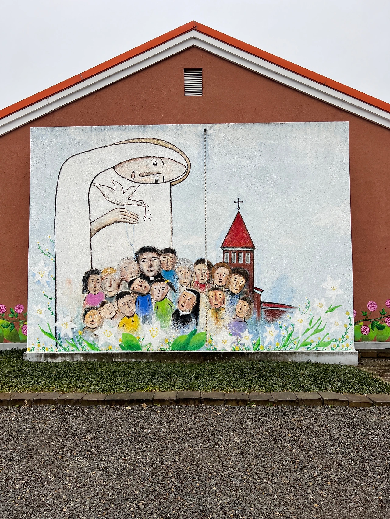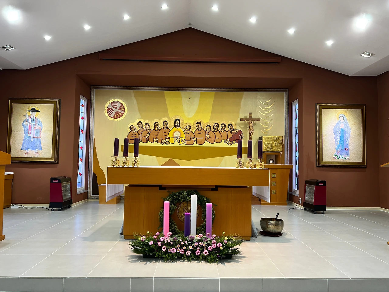 칠곡군 지천면은 대구에서도 조금 떨어져 지리적으로는 칠곡군 왜관읍에 속하는 곳입니다. 그래서 신자수가 그리 많치 않을 것이라 생각했는데 막상 교중미사에 참석해보니 200여석의 자리가 모자랄 만큼 성전을꽉채우고 있었습니다. 어린아이부터 나이든 어르신들까지 신자들의 연령대도 다양했습니다. 신동성당도 예전엔 다른 시골의 성당들 처럼 줄어드는 신자수로 어려웠던 곳중의 하나라고 합니다. 하지만 함영진 요셉신부님 부임 이후 신자수가 꾸준이 늘어나 한때는 250명에 이르기도 하였다고 합니다. 사목회의 연령층이 젊어지고 본당활성화에도 참여가 많아 건강하고 젊은 성당이 되었다고 합니다. 마을공동체에 선한 영향력을끼치고 다방이 하나의 구심점이 되어 지역주민들에게 자연스럽게 다가갈 수 있었던 것같습니다.