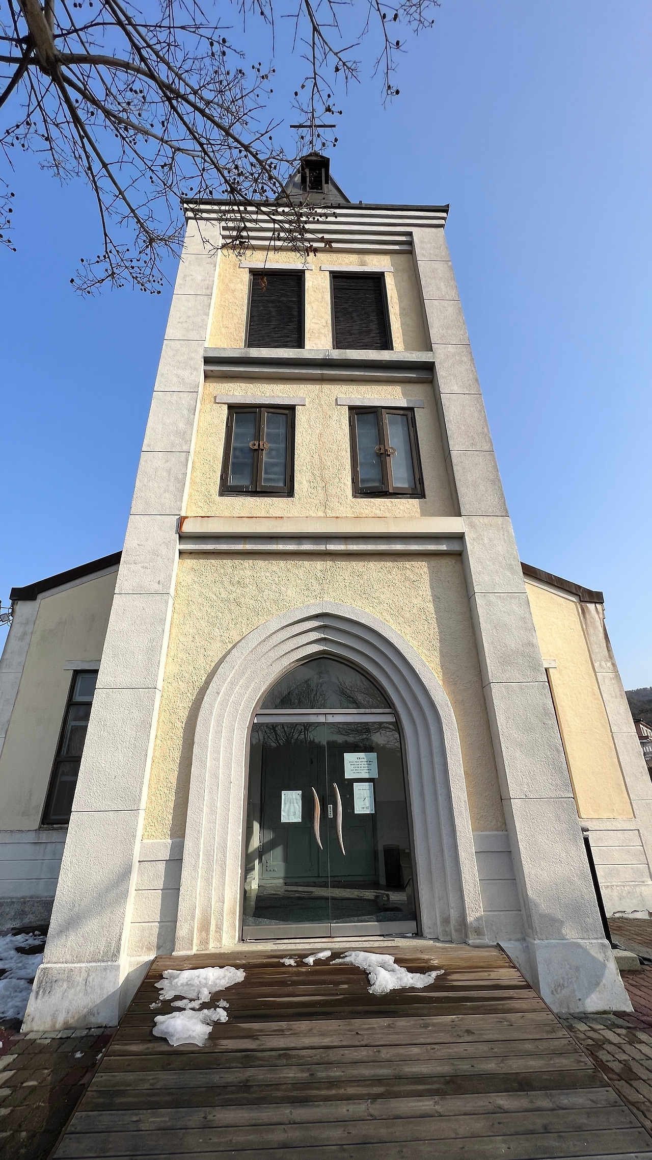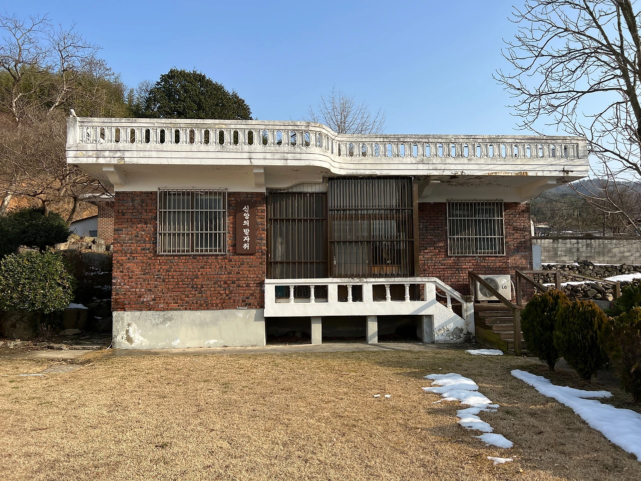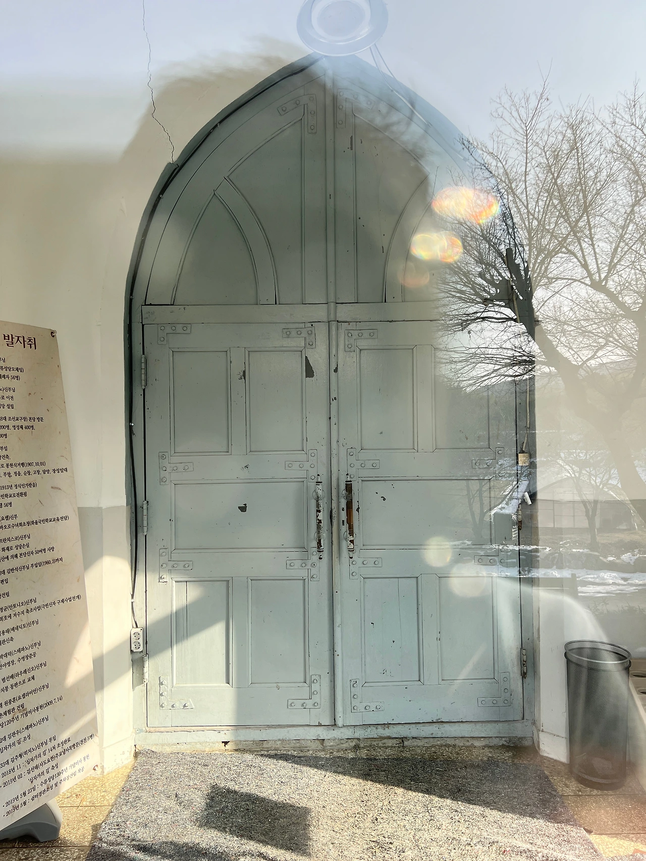 1월경 전날 내린 눈이 아직 녹지않고 군데군데 하얀 꽃처럼 마당에 남아있었습니다. 차갑게 시린 하늘은 파란물이 쏟아질 것처럼 청명하게 떠있습니다. 전북 김제시 금산면 화율리 223번지에 위치한 수류성당은 드넓은 평야와는 조금 떨어진 약간은 오지에 위치합니다. 그도 그럴 것이 화율리는 박해를 피해 이주해온 가톨릭 신자들의 교우촌이 그 모태이기 때문입니다. 1895년 배재 본당에서 이 곳 수류리로 이전하여 수류본당으로 승격하였으니 수류성당의 역사는 지금으로부터 130년 가량이나 거슬러 올라갑니다. 1887년 한불 수호통상 조약으로 박해가 종식되고 비교적 선교가 자유롭게 이루어지던 때였으니 숨어살던 이 지역의 신자들에겐 무엇보다도 성전이 필요했을 것입니다. 마침내 1901년 10월 드망주주교님의 주례로 성당을 봉헌하였다고 합니다. 이 곳 수류리의 수류성당은 처음엔 목조로 지어진 성당이었습니다. 수류성당의 입구쪽에 있는 안내판에는 당시의 성당사진이 있었습니다. 입구쪽에는 목조로 올린 종탑이 아주 격조있게 마을을 내려다 보고 있었습니다.
