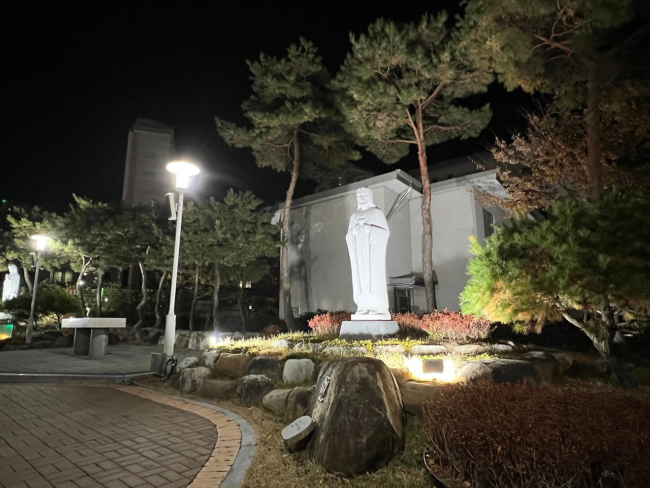 현풍성당은 넓은 대지위에 구성당건물과 안드레아유치원 등이 있으며 성모동산 앞의 잔디밭엔 각종 행사가 열리는 곳으로 사용됩니다. 늦은 밤 잔디밭 벤치의자에 앉아 기도하면 참 좋은 곳이기도 합니다.