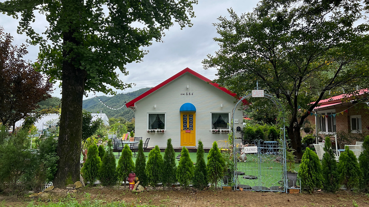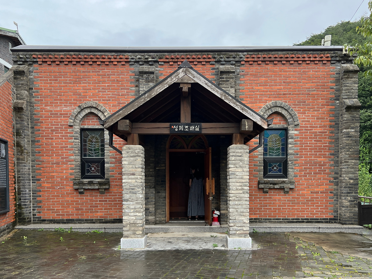 마지막 사진은 풍수원성당의 입구에 있는 성당입니다. 모양과 색이 너무 이뻐서 한참을 들여다 보고 왔습니다. 운영주체는 누구인지는 모르겠으나 당일 운영일이 아니어서 내부를 볼 수 없었습니다. 카페루트도 다음에 들을 땐 꼭 한번 방문하고 싶어지는 곳이기도 합니다.