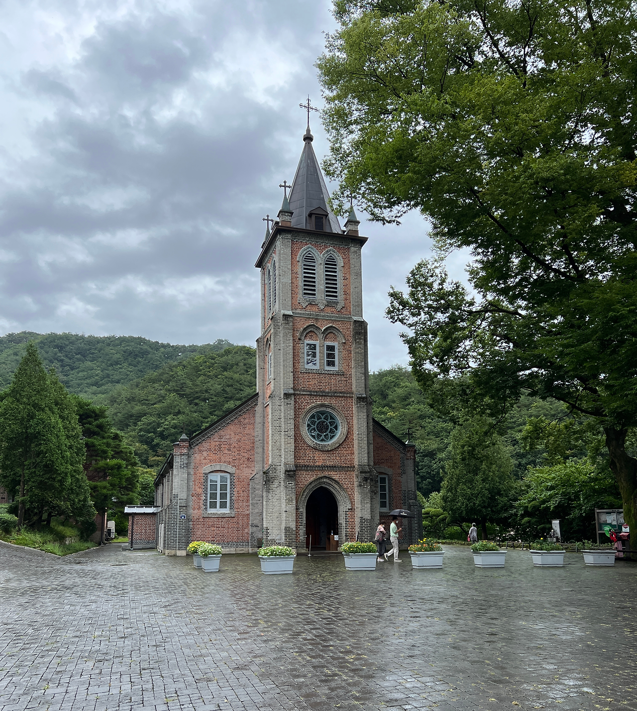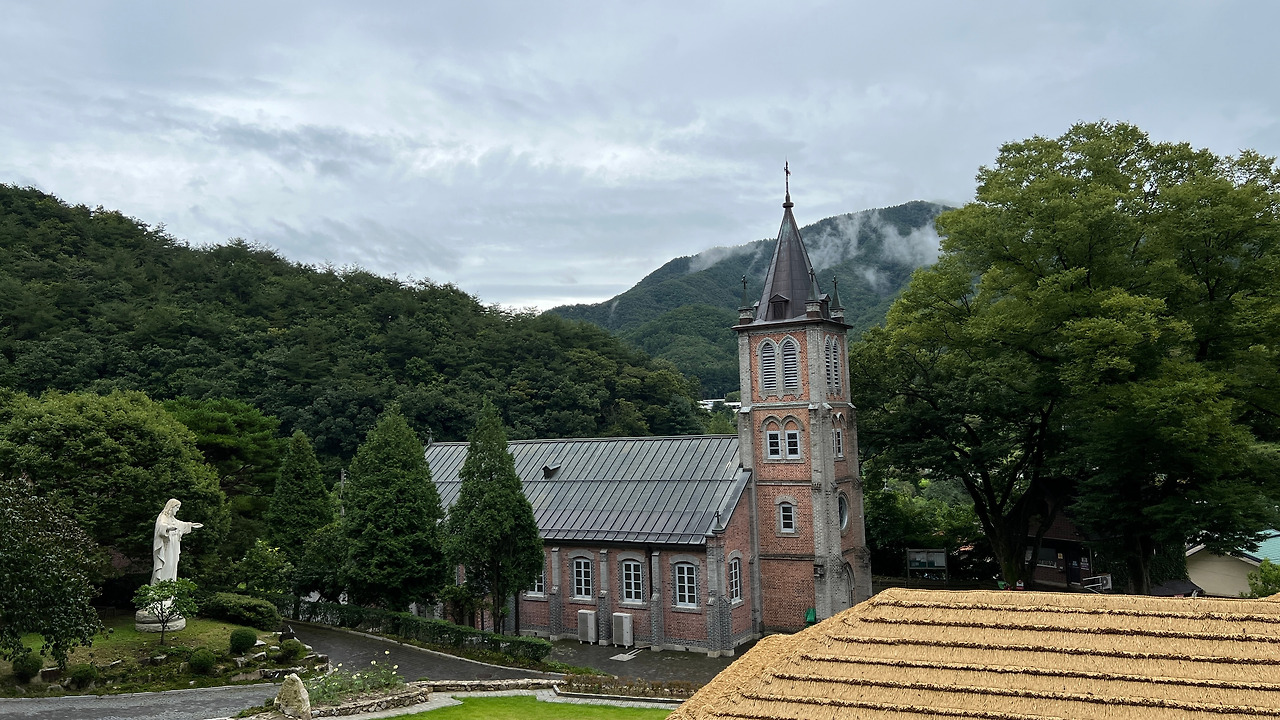 마음에 평생토록 품은 아름다운 건축물이 하나 정도 있다면 풍수원성당을 꼽아도 좋을 듯합니다. 여름 뜨거운 햇빛이 내리다 잠시 소나기가 지나고 난 다음, 구름은 하늘위에 여유롭게 떠있고 물을 한껏 머금은 숲속 나무들 사이에 서있는 이국적 건축물, 풍수원성당은 마치 스위스의 어느 한 공간과 같은 멋진 풍경을 만들어 냅니다.