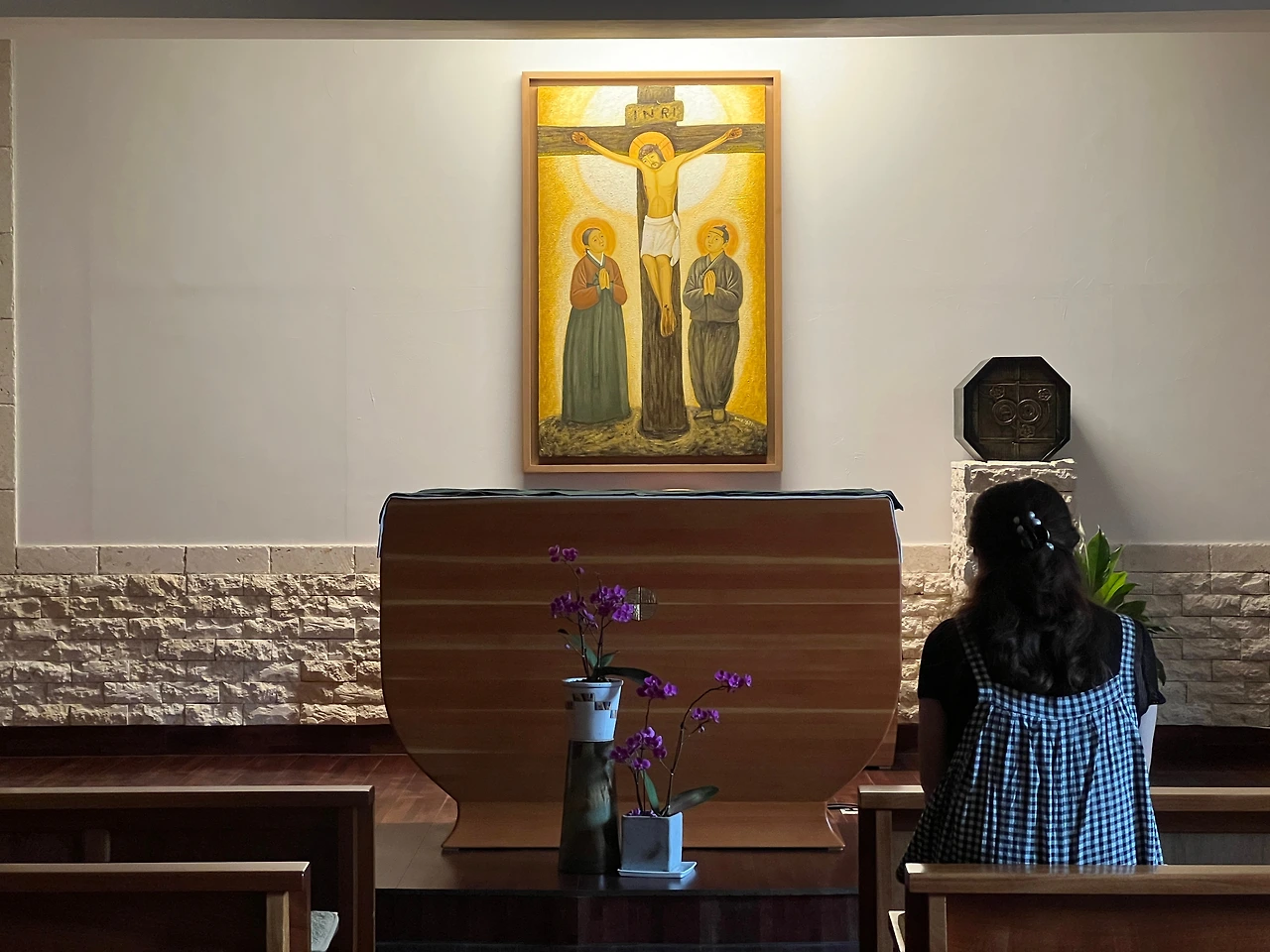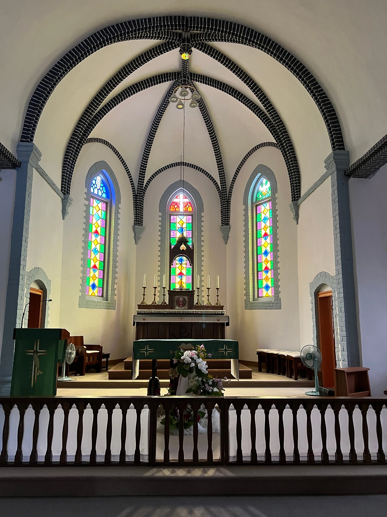 성당내부에 들어가 잠시 묵상을 하고 둘러보았습니다. 고풍스런 제대와 뒷쪽 유리화들이 흐린 날씨에도 아름다운 빛을 만들어내고 있었습니다. 제대쪽을 향해 사진을 찍는데 자매님 한분이 사진촬영이 금지되어있다고 말씀하셨습니다. 더 이상 내부의 사진을 담을 수 없어 오래도록 성당에 앉아 마음으로 그 아름다운 형상들을 담을 수 밖에 없었습니다. 한번씩 생각나면 가봐야 할 이유가 생긴 것입니다. 아무래도 그 기억이 오래도록 남아있지는 않을 테니까요.