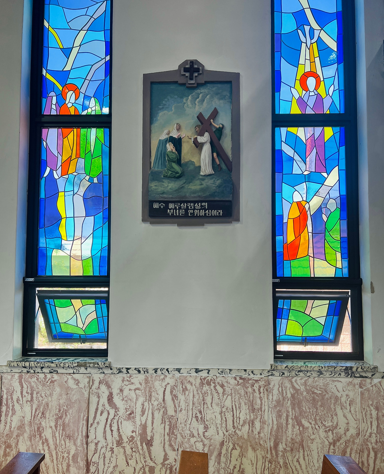 부안성당의 공식 설립일은 1926년 5월 29일입니다. 신자수가 늘어나자 새로운 성당의 건축이 시급하던 참에 가톨릭구제위원회의 원조를 받아 건립하였고 1963년 8월27일에 축성식을 하였다고 합니다. 부안성당의 전신은 등룡리에 있는 성당이었지만 외딴 곳이기도 하여 전교활동에 어려움이 많아 지금의 이자리로 옮겨왔다고 합니다. 이곳에서 부임하신 신부님 중에 임실성당의 지정환 신부님의 이름을 들을 수 있어 반가웠습니다. 경제적으로 어려운 이웃들을 위해 간척사업을 하는 등 많은 도움을 주신 분이십니다. 이후에도 부안성당은 어려운 이웃들의 자립을 위해 협동조합을 설립하는 등 전교와 헌신을 통해 부안에 선한 영향력을 이어오고 있는 성당이라고 합니다. 그래서 인지 지금도 등록 세대수가 709세대 신자가 1,204명이나 되는 등 소읍의 성당이지만 활기가 넘치는 성당으로 그 명맥을 이어가고 있는 듯 했습니다.