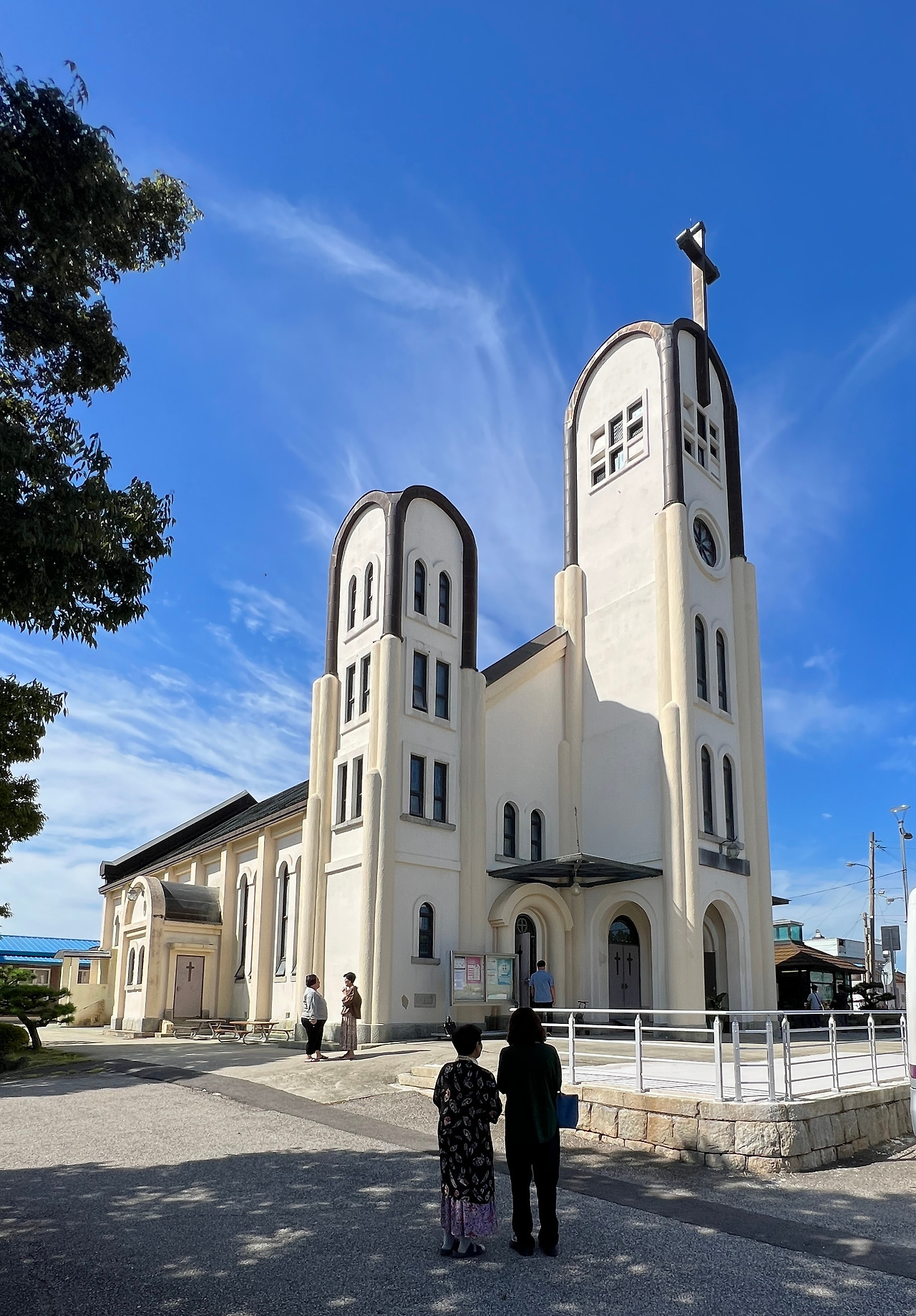 가을의 초입을 가로질러 부안성당에 도착하였습니다. 성당입구에 들어서자 눈부실만큼 하얀 성당이 보입니다. 세개의 아치형 탑이 한눈에도 아름답게 보입니다. 둥근아치의 첨탑은 처음 보는 것이라 이색적입니다. 고딕양식이라고 하기에도 비잔틴 양식이라고 하기에도 애매한 그런 성당의 모습에 한순간 심취하여 오래도록 올려다 보았습니다. 남미의 어느 곳이라해도 어울릴만큼 독특하고 이국적인 성당입니다.