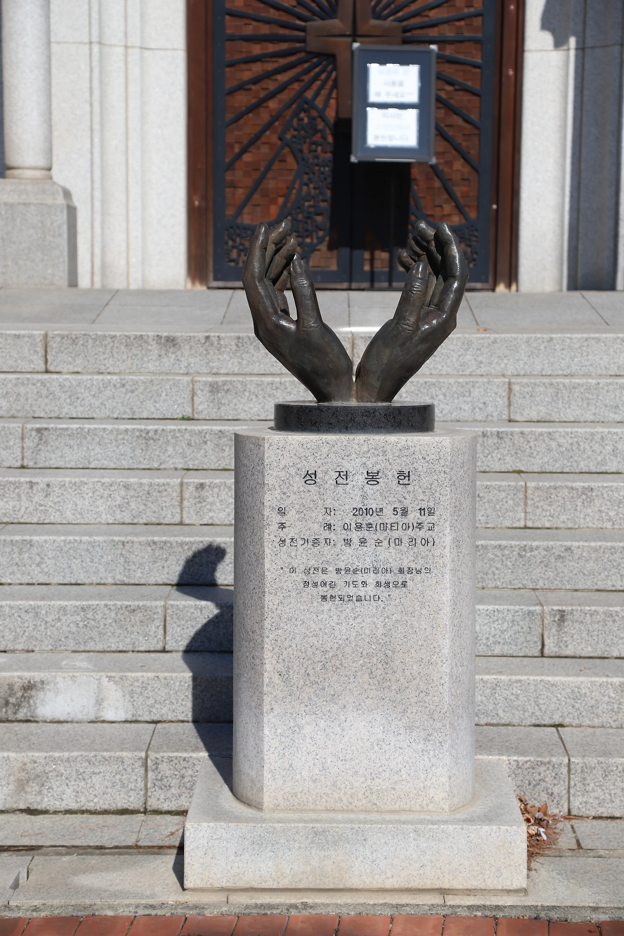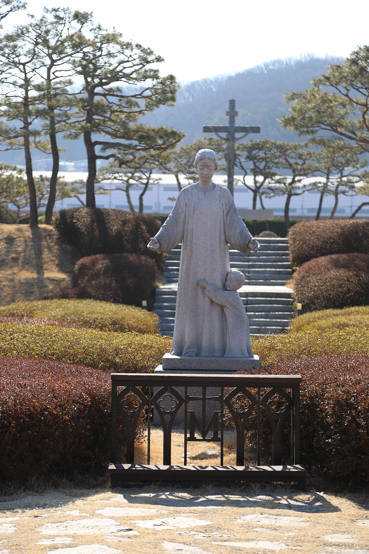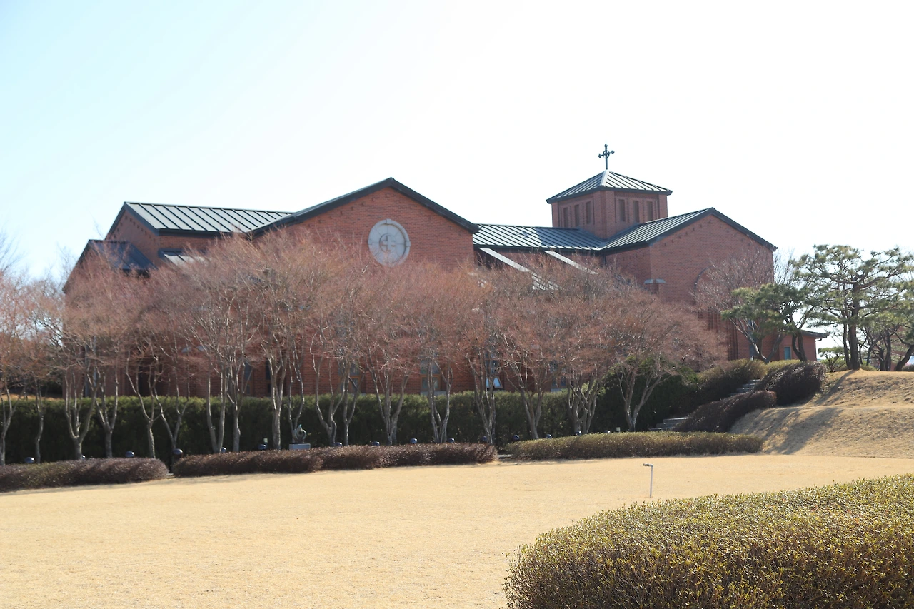 요당리 성지에 들어서면 너른 잔디위에 정갈한 붉은벽돌의 성당과 하얀색의 성모자상이 함께 한눈에 들어와 평화롭고 아름다운 풍경같은 그림을 그려냅니다. 성모자상이 있는 앞쪽은 기도의 광장으로 개인 기도와 묵상을 통해 마음을 가다듬는 공간이기도 합니다.