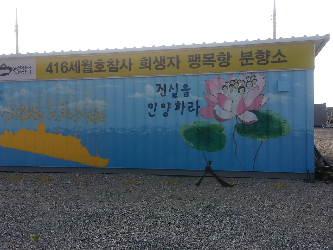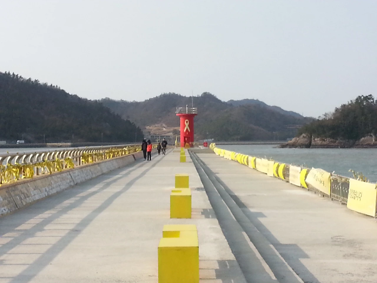 방파재를 따라 난 길 끝에 빨간색 등대가 서있습니다. 길옆으로는 추모와 애도의 글들이 적힌 타일들이 박혀있습니다. 노란리본들과는 달리 타일들은 마치 떨어지지 않을 것처럼 견고하게 벽에 박혀있었고 큰 추모비를 형성하고 있었습니다."애들아 미안하고 또 미안하다"적혀있는 글들이 하나하나 가슴을 찟고 통곡할 만큼 슬픈 글들이었습니다. 등대를 향해 걷는 내게 바람은 더욱 거세게 밀고 당기고 흔들어, 영혼들의 억울한 손길처럼 느껴졌습니다."내가 왜 이 찬 바다 속에서 죽어가야 하는데" "날 좀 꺼내주세요" "어두워요 숨이 막혀요" "내말 좀 들어보세요 왜 내가 이런 죽음을 맞이해야 하는데요" "내 말좀 들어보세요"나를 향해 어깨를 흔들어 대는 그 말들에 나는 고개를 떨굴 수 밖에 없었습니다. 듣는 것조차도 힘든 외침과 절규였습니다.
