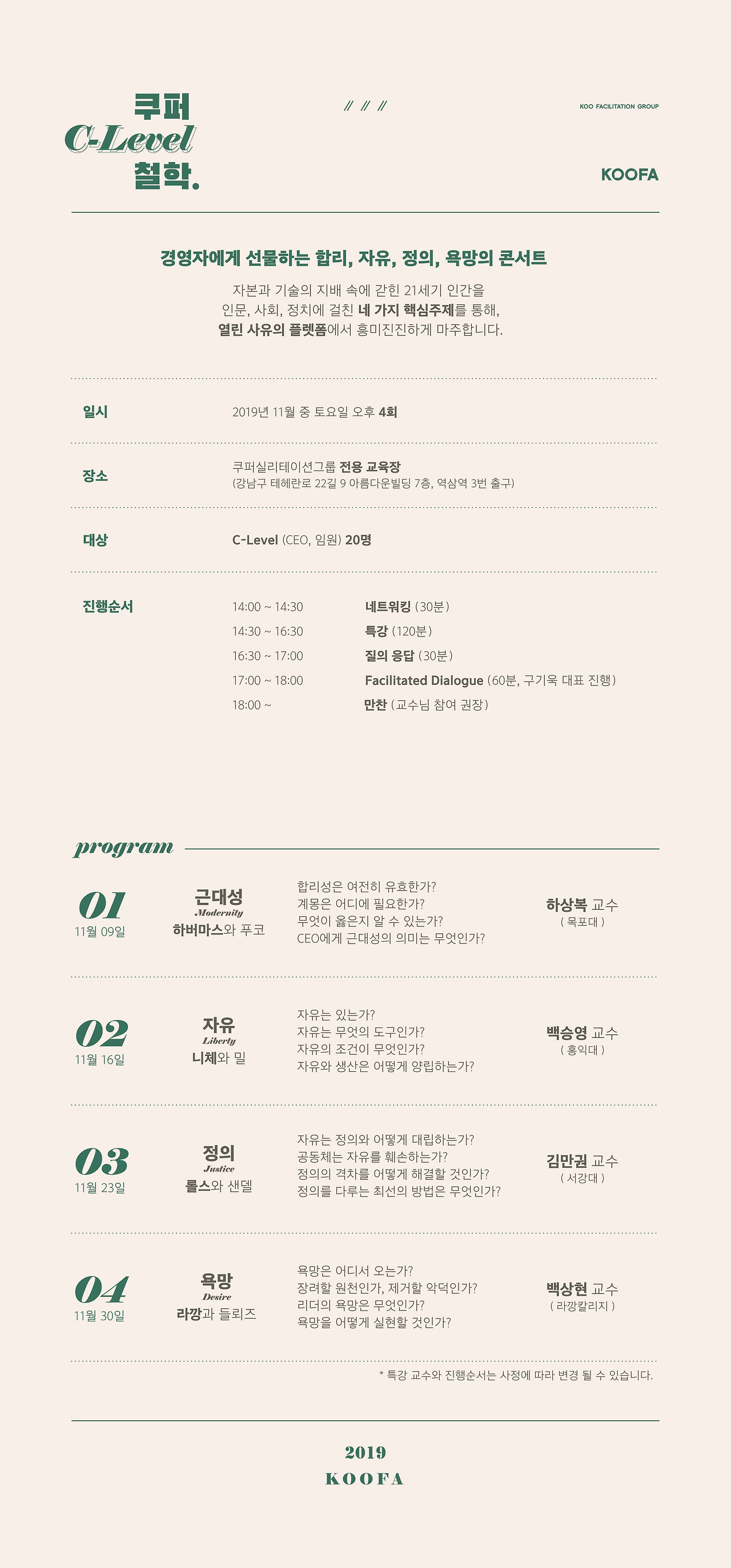 쿠퍼 C-Level 철학 (근대성-자유-정의-욕망)- 4주 연속 토요일
