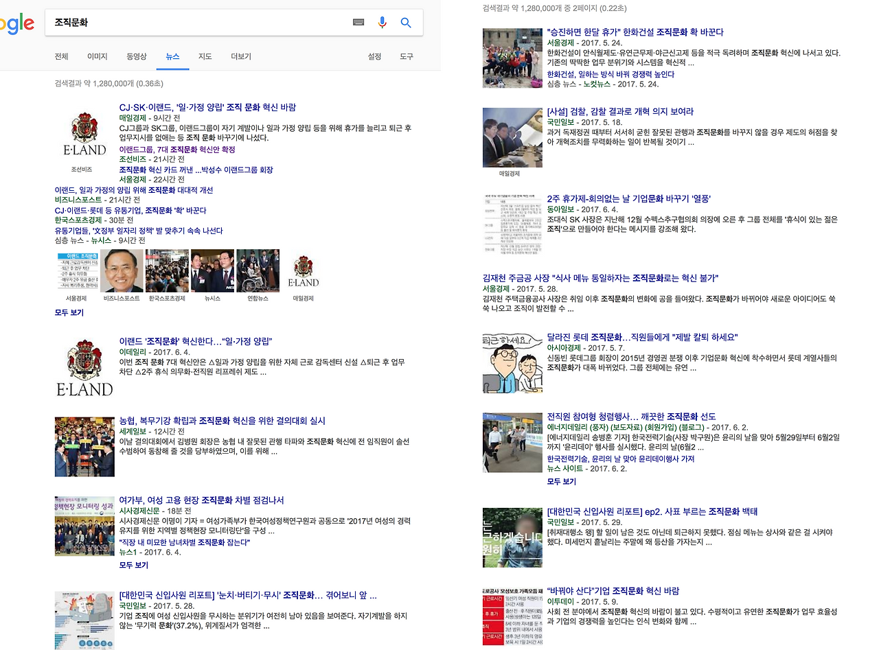 이를 증명하듯 유수의 기업들이 조직문화의 개선을 위한 시도들을 매일같이 언론을 통하여 쏟아내고 있다. 일과 가정 양립, 칼퇴, 수평적 조직문화, 직급 파괴, 별명 부르기, 젊은 조직 등을 외치며 자랑스러워 한다.