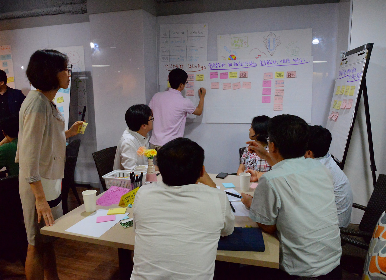 소그룹 배치로 토론의 효율성을 확대할 수 있는 장소에서 회의를 진행한다.