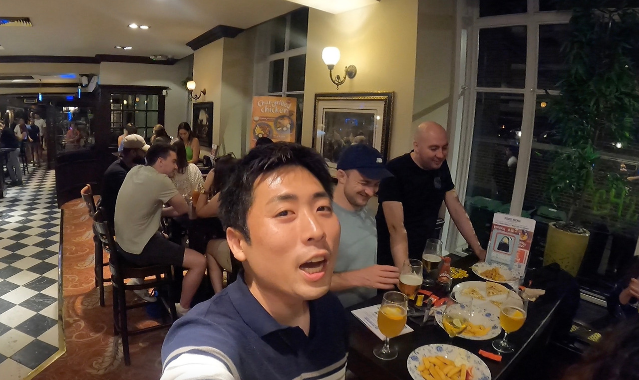 그렇게 영어와 한국어를 번갈아가며 4시간을 술을 마시고 놀다 보니 회화가 일취월장 성장하는 기분이다. 이 모임에 가장 좋은 점은 내 영어가 완벽하지 못하다는 것에 대한 스트레스가 극도로 적어진다는 점이다. 왜냐하면 적어도 저들의 한국어보다는 내 영어가 더 낫기 때문이다. 보통의 영국인이 더듬더듬 말하는 나를 답답하게 여긴다면 그곳의 영국인은 이른바 역지사지의 마음으로 나의 영어를 듣는다. 이토록 건강하게 서로를 이해하는 대화가 있다니.