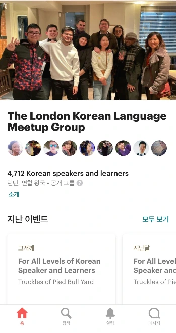 그리고 2번이 바로 내가 채택한 방법인데 meet up이라는 오프라인 동호회 어플을 통해 영국인들을 만나는 것이다. 이 어플은 같은 취미를 가진 사람들끼리 오프라인 약속을 잡고, 실제 약속 날짜에 다 같이 모여 술을 마시며 놀거나 공통의 관심 분야를 즐길 수 있게 해 준다. 사이버펑크 시대에 이런 휴머니즘 넘치는 어플이 있다니! (참고로 3번째 방법은 공공시설의 Lecture를 이용하는 방법인데, 이건 다음에 시도해보기로 한다).