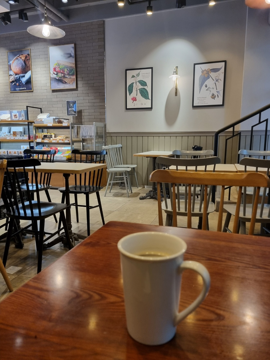따뜻한 커피와 아이들 간식이 될 빵 몇 개를 사고 안쪽 자리에 앉았다.