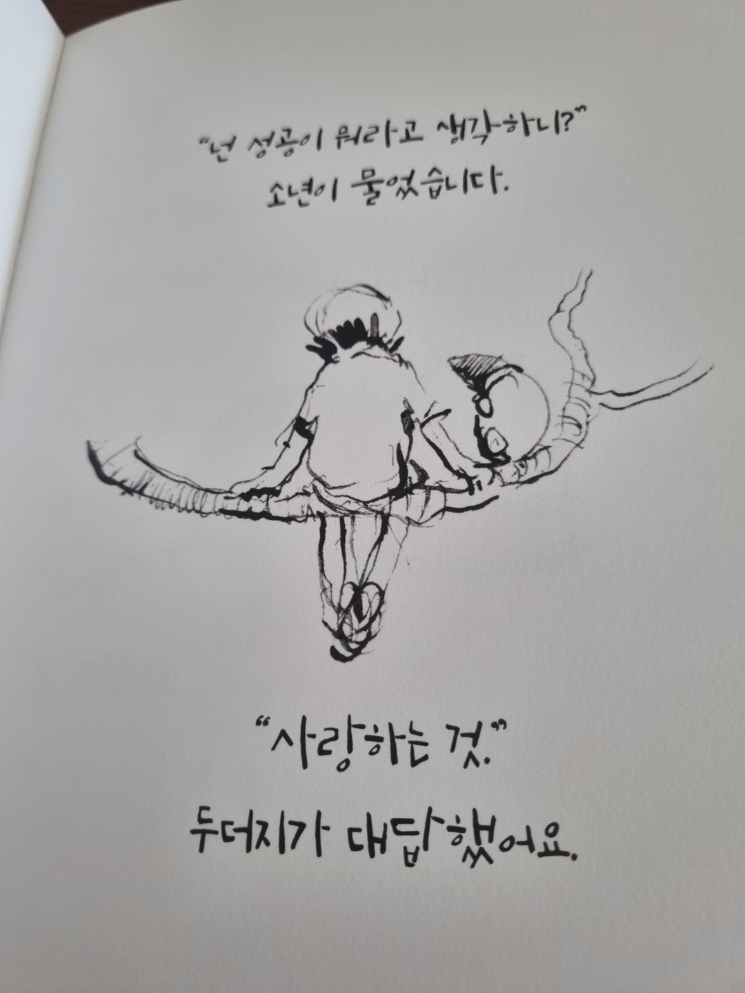 그 사랑으로 말미암아 내가 살고 있는 거구나. 감사했다. 그리고 왜 소년이 "넌 성공이 뭐라고 생각하니?"라고 물었을 때 두더지가 "사랑하는 것."이라고 답했는지 알게 되었다.