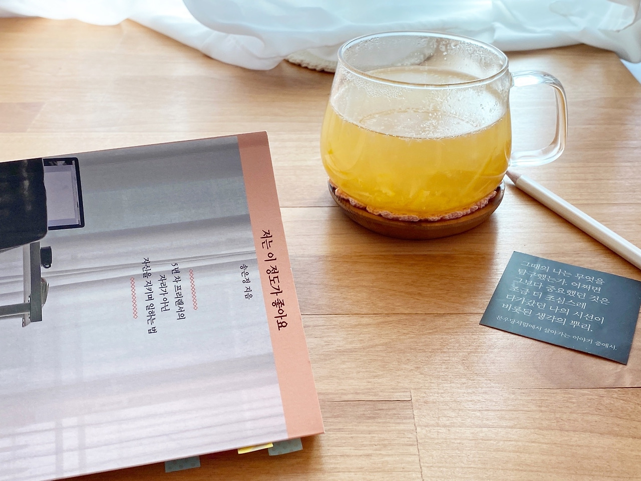 조금씩 집에서 머무르는 시간에 익숙해지고 있다. 너무 늘어지지 않으려고 몸을 움직이며 집안을 정리하고, 새로운 것에 도전을 하며 내 나름의 방법으로 하루를 살아간다. 책을 읽고 좋아하는 영화를 보는 것도 잊지 않는다. 이런 일상이 주는 소중함을 지금은 조금 더 누려볼 생각이다. 여전히 자주 게을러져서 다시 마음을 다독여야 하지만 금방 포기하지 않기로 했다. 나를 어르고 달래서 다시 시작하고 또다시 시작하며 습관이 될 때까지 느리더라도 한걸음 걸어가 보기로 했다. 그러다 보면 조금씩 달라진 마음가짐과 일상을 마주하게 되지 않을까? 오늘도 그런 나를 꿈꾸며 책상 정리를 한다.