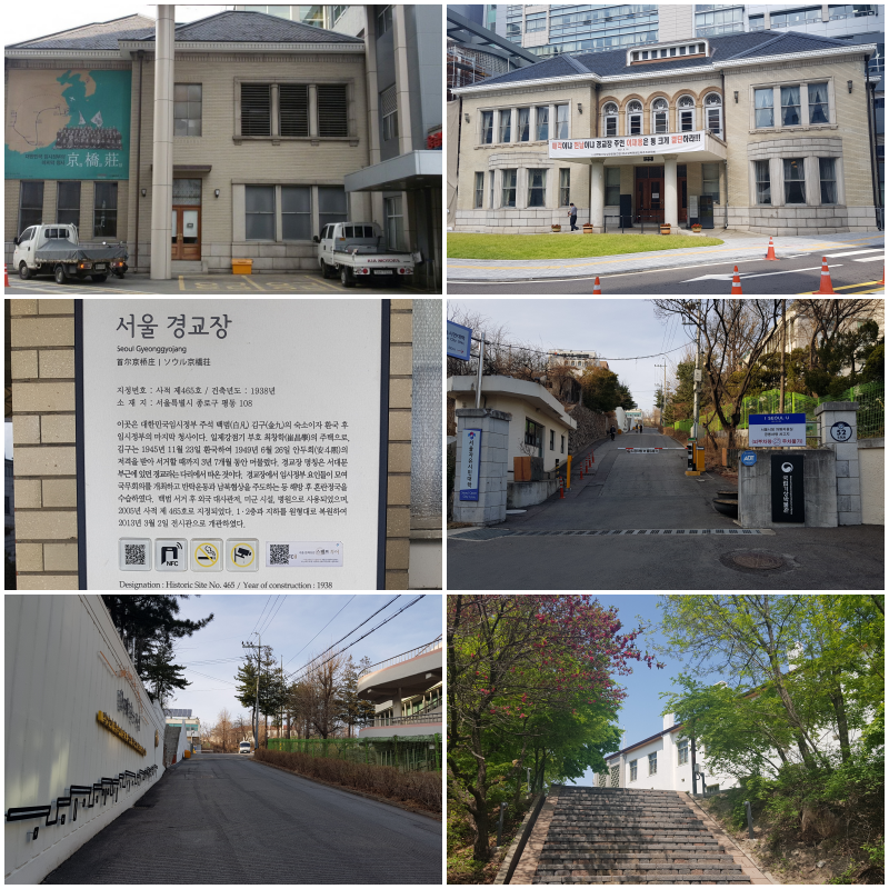 서울시교육청 정문으로 오르는 강북삼성병원 입구를 들여다 보면 병원 입구 안에 한눈에도 오래되고 격조 있는 건물의 옆모습이 보인다. 경교장(京橋莊)이다. 경교장은 일제강점기에 삼성금광(三成金鑛)을 운영한 갑부 '최창학'이 지은 사저이다. 별칭은 죽첨장(竹添莊/일본식 발음 '다케조에조'). 갑신정변 당시 일본 공사이자 정변의 기획자였던 '다케조에 신이치로(竹添進一郞)'의 이름을 따 붙인 동네 이름이다. 지금의 충정로와 서대문 일대를 가리키는 일본식 지명 죽첨정(竹添町/다케조에마찌)에 있는 저택이라는 의미 정도로 이해하면 되겠다. '조선의 3대 부호'니 '금광왕'이니 하는 별호로 유명한 인물이 친일 행위와 무관할 수는 없는 일. 해방이 되자 최창학은 이 저택을 ' 백범(白凡 金九)'에게 헌납한다. 해방 당시 임시정부는 '미 군정' 당국으로부터 정부로 인정받지 못하고 요인들 모두 개인 자격으로 귀국한 터, 갈 곳도 모일 곳도 없던 상황에 놓여 있었다. 결국 김구는 이를 받아들여 '대한민국 임시정부 주석 판공실' 겸 사저로 활용한다. 그 때 건물을 '죽첨장'에서 '경교장'으로 바꿔 불렀다 한다. '경교장(京橋莊)'은 '경교(京橋)' 또는 경구교(京口橋)라 불리는 다리에서 비롯된 지역의 별칭을 빌어온 것이다. 지금의 5호선 전철 서대문역 옆 '적십자병원'과 삼성 강북 병원 일대는 조선 시대에 '경기 감영'이 있던 자리이다. 수도인 '한성부'의 서대문 바로 밖에 경기도 관찰사가 주재하는 경기 감영이 있었던 것이다. 옆으로 인왕산에서 발원한 물줄기가 흘렀는데 거기 놓인 다리 -경교 또는 경구교-를 건너야 경기 감영 쪽으로 건너갈 수 있었던 듯하다. '경교'는 '경기감영교'의 준말이라는 해석이 붙고, '경구교'는 '경기감영으로 들어가는 입구에 있는 다리'라는 해석이 따른다. 모두 틀리지 않아 보인다. 아무튼 '경교장'이라는 이름은 그 다리에서 비롯된 것. 백범이 1949년 암살된 이후, '중화민국 대사관', 6.25 전란 중 '미군 의료진 숙소', 월남 대사관 등으로 쓰이다가 1969년 '고려병원 본관 및 행정동'으로 매각된다. 용도에 따라 내부 구조도 많이 변했으나 백범의 최후 자취에 대한 보존 요구가 커지자 소유주인 '삼성 그룹'은 '삼성강북병원' 소속의 이 건물을 서울시가 위탁 받아 '서울역사박물관'에 의해 관리하도록 양해한다. 안에 들어가 보면 '안두희'가 쏜 네 발의 총탄 중 2발의 흔적이 유리창에 남아 있다. 4발 모두 몸에 맞혔지만, 관통한 2발의 흔적이라 한다. 한편 최창학의 '삼성(三成)광업'과 오늘날의 '삼성(三星)'이 한자는 달라도 한글이 같다는 공통점이 눈길을 끈다.
