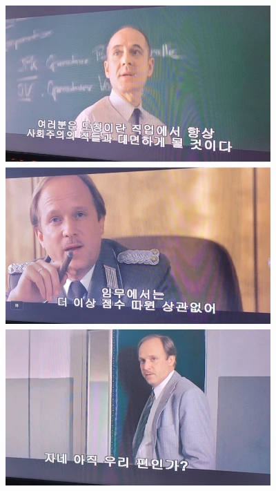 한국의 중앙정보부와 비슷한 동독 비밀경찰에서 도청을 담당하는 주인공, 비즐러 대위의 이야기다. 그의 삶을 뒤흔드는 선택과 용기를 그린다. 영화가 끝나고 삭제 장면에 대한 감독의 해설을 보았다. 이 작품이 역사적 사건을 바탕에 둔 극영화라는 사실을 다시 알았다. 그리고 문득, 이게 독일판 [바스티즈]라는 생각이 들었다. 예전에 봤을 땐 줄거리도, 실화 여부도 잘 몰랐던 것 같다. 어쩌면 그 시절 나는 영화를 ‘시간을 보내는 용도’로만 봤는지도 모른다.