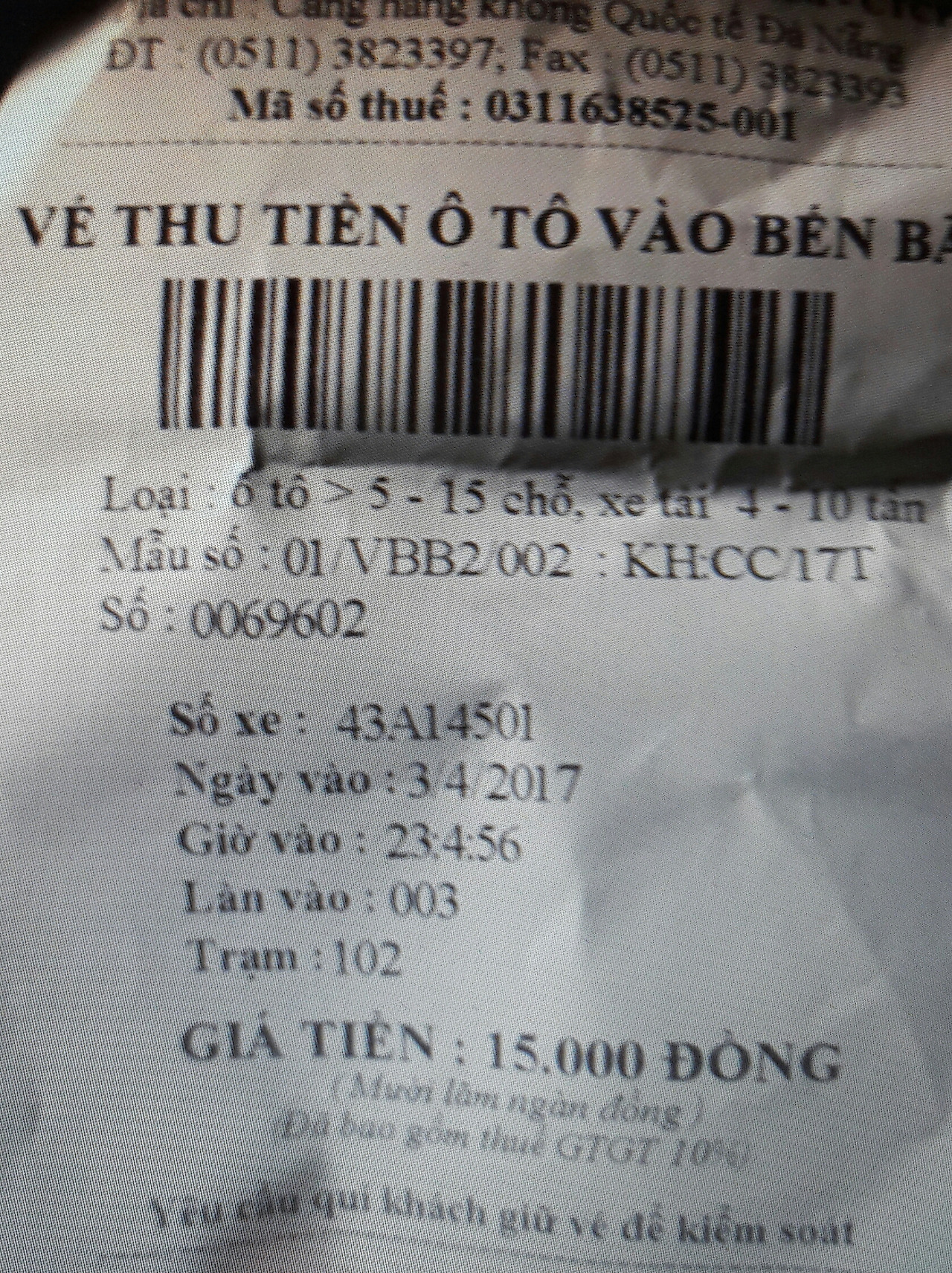 즉, 다낭공항 들어올 때 모든 차는 주차료 15,000동을 내고 들어온다.