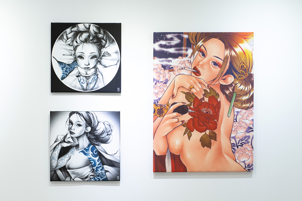 타투가 미술관으로 들어왔습니다. 불법인데도 말이죠. 국가에서 법제화되지 못한 체 방황하고 있는 예술이 미술관으로 들어 온 것입니다. 그것도 국가의 지원을 받아서, 아주 다양한 형태로 말입니다. 서양화, 동양화, 한국화, 팝아트, 추상화 등 셀 수 없을 정도로 다양한 회화의 종류처럼 타투의 종류도 다양한 것 알고 계신가요? 이번 <문신전>은 10명의 각기 다른 스타일을 가진 타투이스가 참여했으며, 스타일뿐 아니라 작품의 형태도 다채로웠습니다. 작가가 아닌 전시 기획자로 참여하며 가장 우려했던 점은 전시 작품의 다양성 부족이었습니다. 타투이스트의 '도안 혹은 사진' 전시가 진행되는 것이 가장 큰 걱정이었는데요. 하지만 도안과 사진을 비롯해 터프팅, 아트 토이, 원화, 전사지 모음, 연, 보드 등 다양한 작품으로 전시는 정말 풍성하게 진행되었습니다. 저는 위에서 언급한 질문에 문신전에 참여한 작가들의 작품을 소개하며 대답을 대신해보려 합니다.
