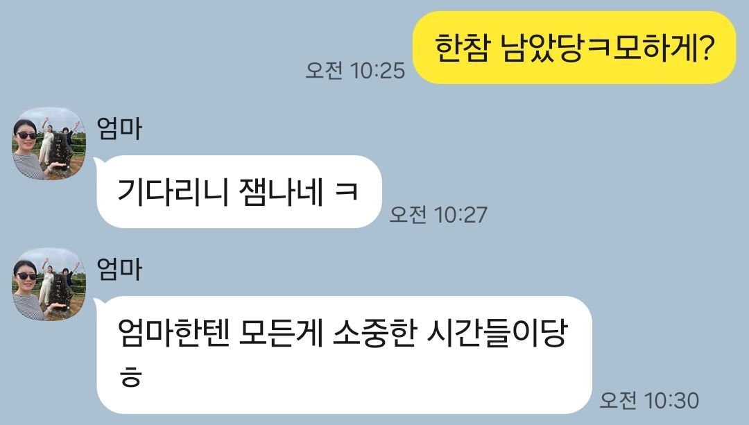 엄마한텐 모든 게 다 소중한 시간들이니, 기다림도 지겹지 않다는 엄마의 말이 뭉클했다.