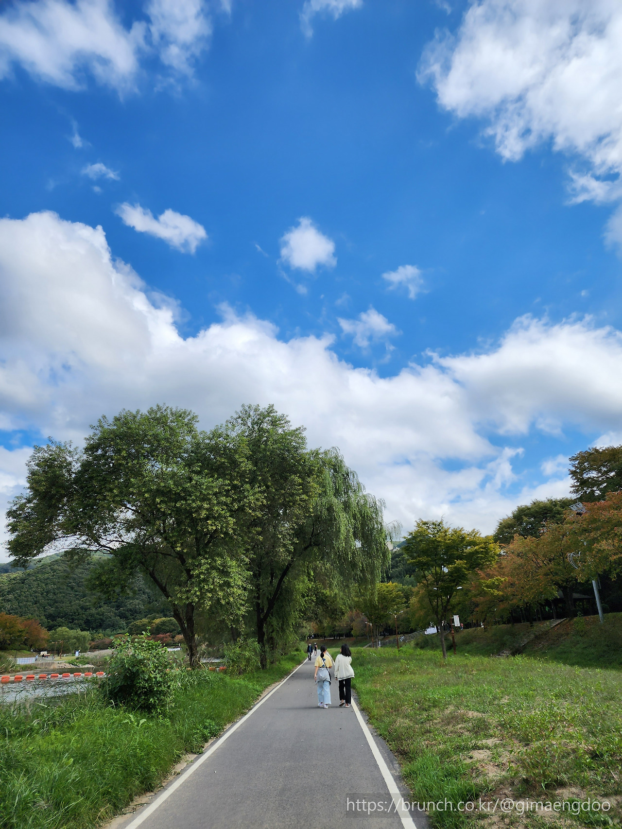 원할 때마다 언제든 걷고 뛸 수 있는 차 없는 길이 필요했다. 이곳은 계절감에 푹 빠져 무작정 걷기 좋은 하천이 1분 거리에 있다.