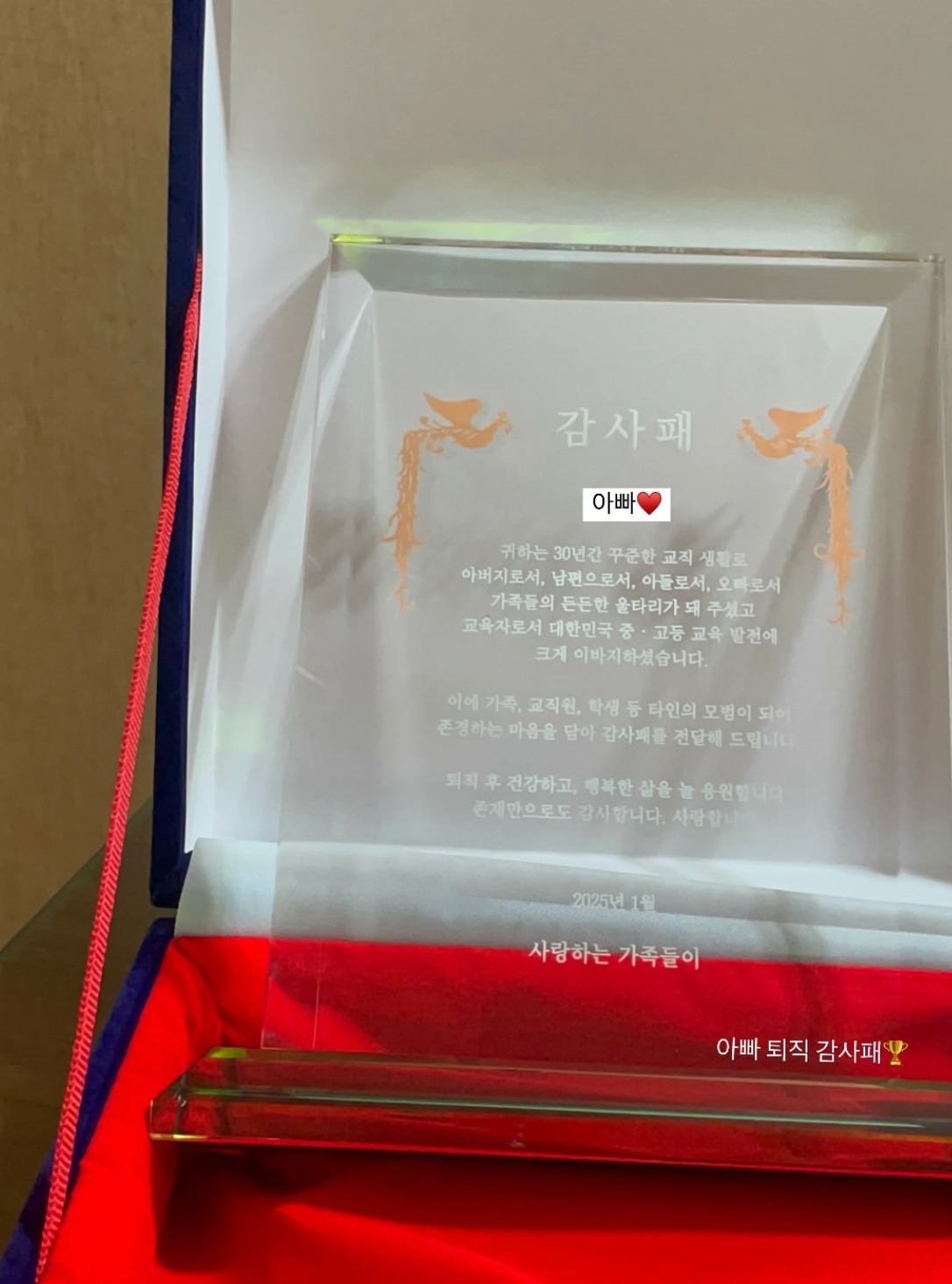 진짜 퇴직하셨을 때 감사패를 만들어 드렸는데