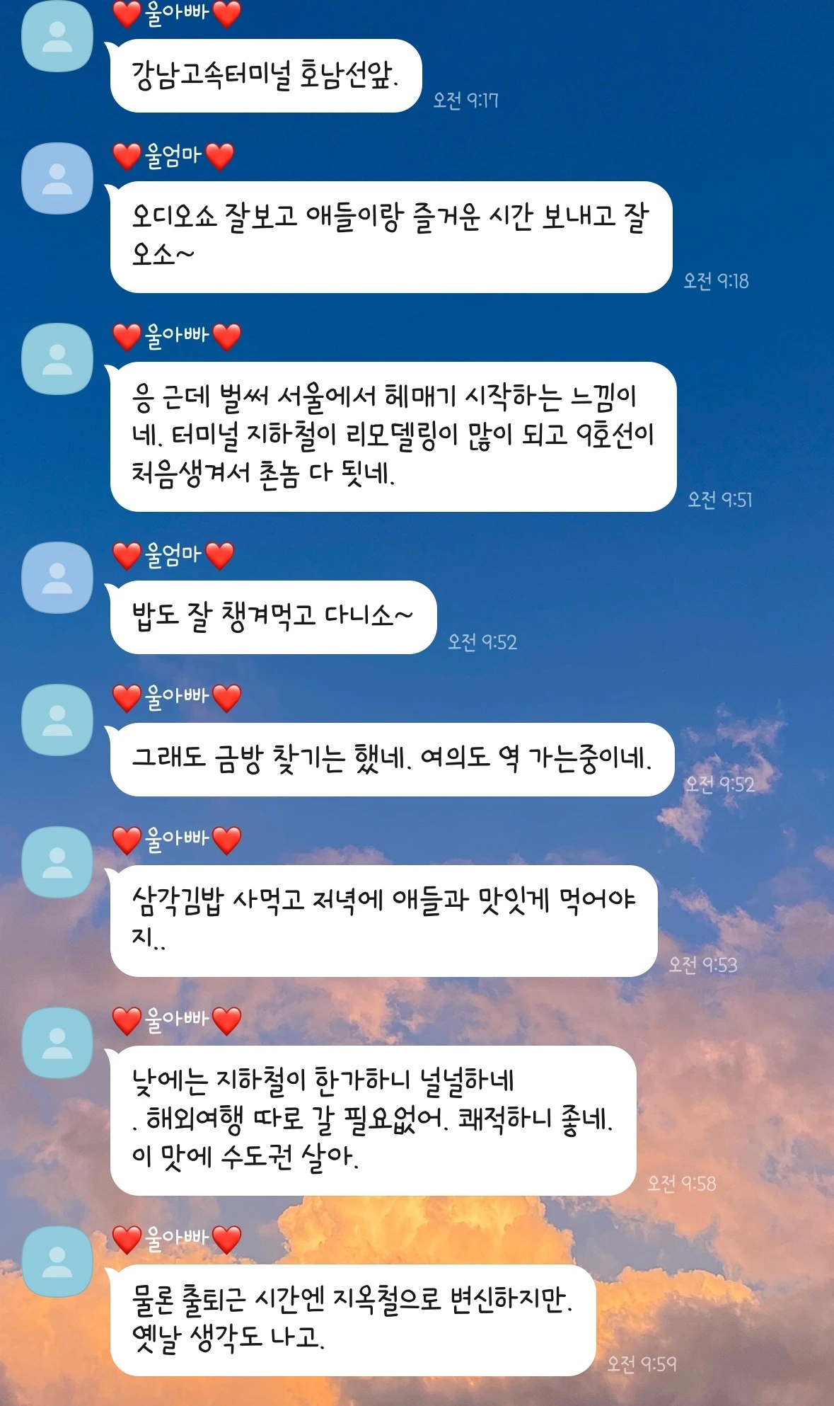 아빠는 서울에 도착했고, 도착해서 뭘 드셨고,