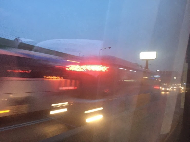 해질녘 도로 위 집으로 돌아가는 헤드라이트들 같은