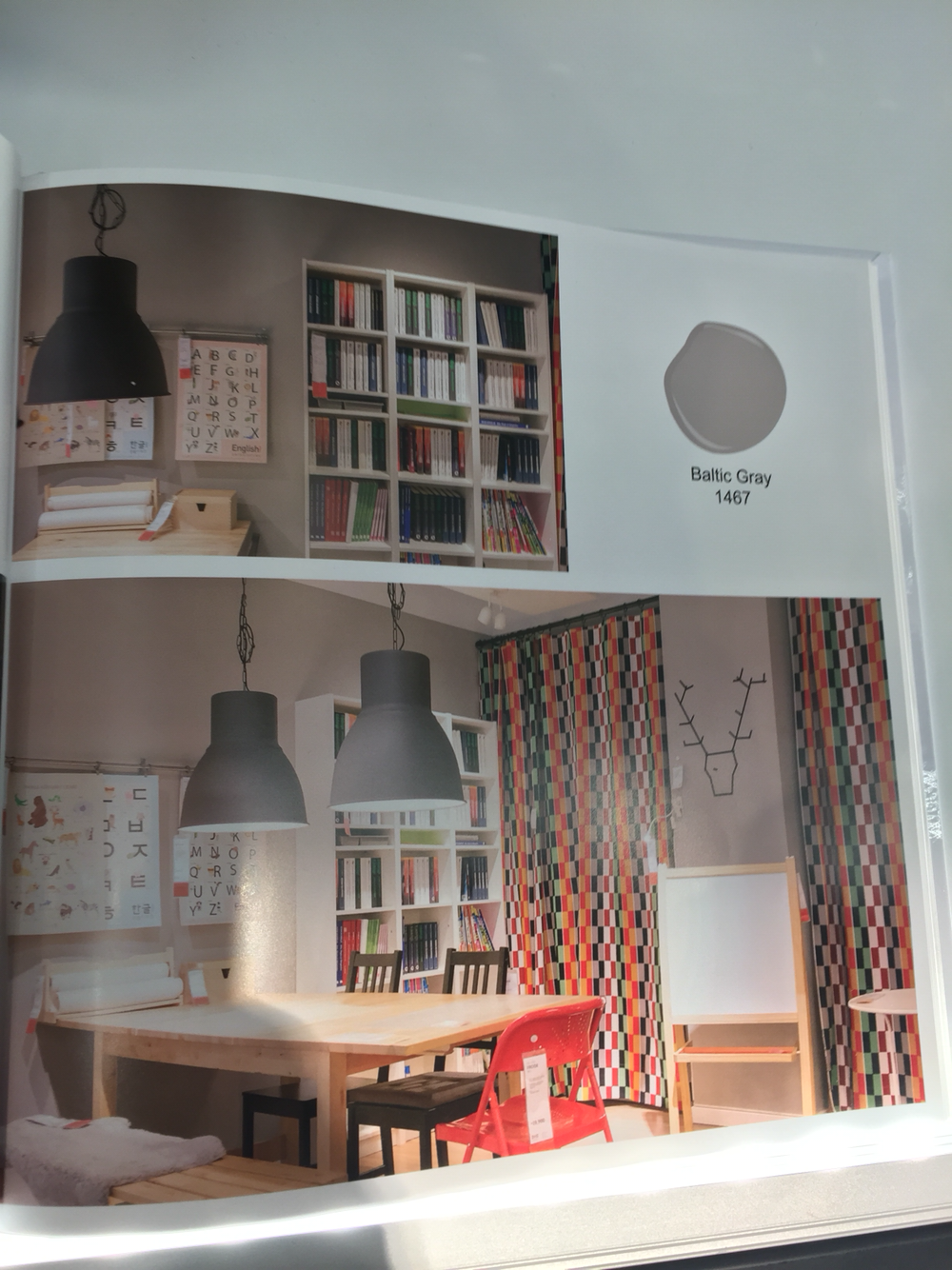 여러 가지 컬러칩과 스타일 제안 책자, 그리고 웹서핑을 통해 벤*민 무어의 Steel Wool 색상으로 방을 칠하기로 결심했다. 벤*민 무어의 페인트는 갤런 (gallon, 3.785412 liter / 쿼터 갤런 (1/4이니 약 1 리터) 의 용량으로 판매되는데 방 사면을 모두 칠할 계획이어서 갤런을 사기로 했다. 요새 나오는 페인트들은 벽지를 뜯을 필요 없이 위에 덧바르면 되는 수성 페인트들이었고, 이미 도배된 벽지는 밝은 색이라 어두운 색으로 결정한 이번 경우에 따로 프라이머는 구입하지 않았다.