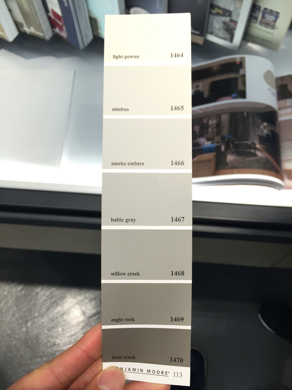 일단 내방은 그레이 계열로 해보기로 하고 (어디서 본 건 있어가지고) 아이파*몰에 생긴 벤*민 무어 매장에 방문했다. 셀프 인테리어와는 전혀 관련이 없는 얘기지만 벤*민 무어는 뛰어난 투자가로 알려진 워렌 버핏의 회사 버크셔 해서웨이 계열의 페인트 회사로 친환경 페인트를 생산하고 있으며, 소매 방식의 영업으로 고객이 매장을 방문하면 약 4,000여 가지의 컬러샘플 중에서 하나를 골라 즉석에서 조색해준다. 국내에는 소매영업 뿐 아니라 삼*서울병원, 이케* 등에 페인트 시공도 함께 한 것으로 알고 있다.