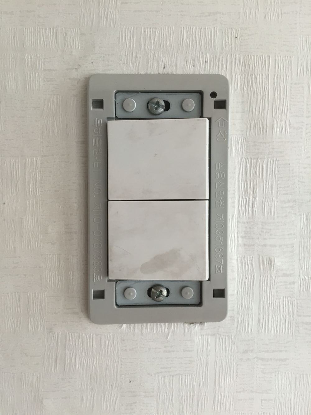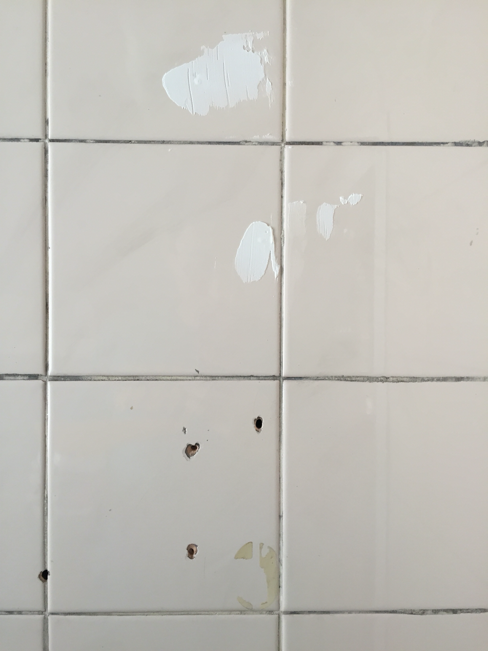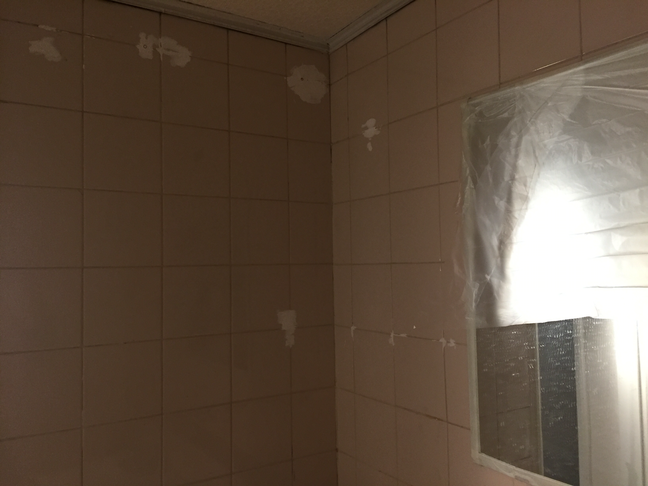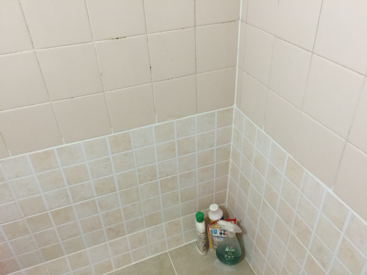 방 페인팅에 이어 욕실과 거실을 바꿔보기로 결정했다. 2년 전 도배를 마친 집이라 크게 흠 될 곳은 없었지만, 거실 역시 시조새같은 형광등 자국과 벽걸이 텔레비전 거치대용 구멍, 시계 거치용이었던 것으로 보이는 못, 벽지 일부에 붙어있던 테이프 등으로 벽 일부가 상한 상태였다. 욕실의 경우 2년 전 도배 작업이 진행될 때 욕조를 떼었다고 들었는데, 그 때 타일을 새로 시공한 것 같다. 하지만 욕조가 있던 높이까지만 새 타일 작업이 진행된 상태여서 욕조 높이 윗쪽에 붙어있던 타일들은 1992년에 시공된 그대로였다. (오마이갓) 물때는 생각보다 많이 끼어있지 않은 상태였으나, 환풍구인것으로 보이는 구멍난 철판과 전기 배선용으로 보이는 작은 철문, 곳곳에 세월의 흔적을 통해 아로새겨진 못구멍 등이 나의 눈살을 찌푸리게 만들었다.