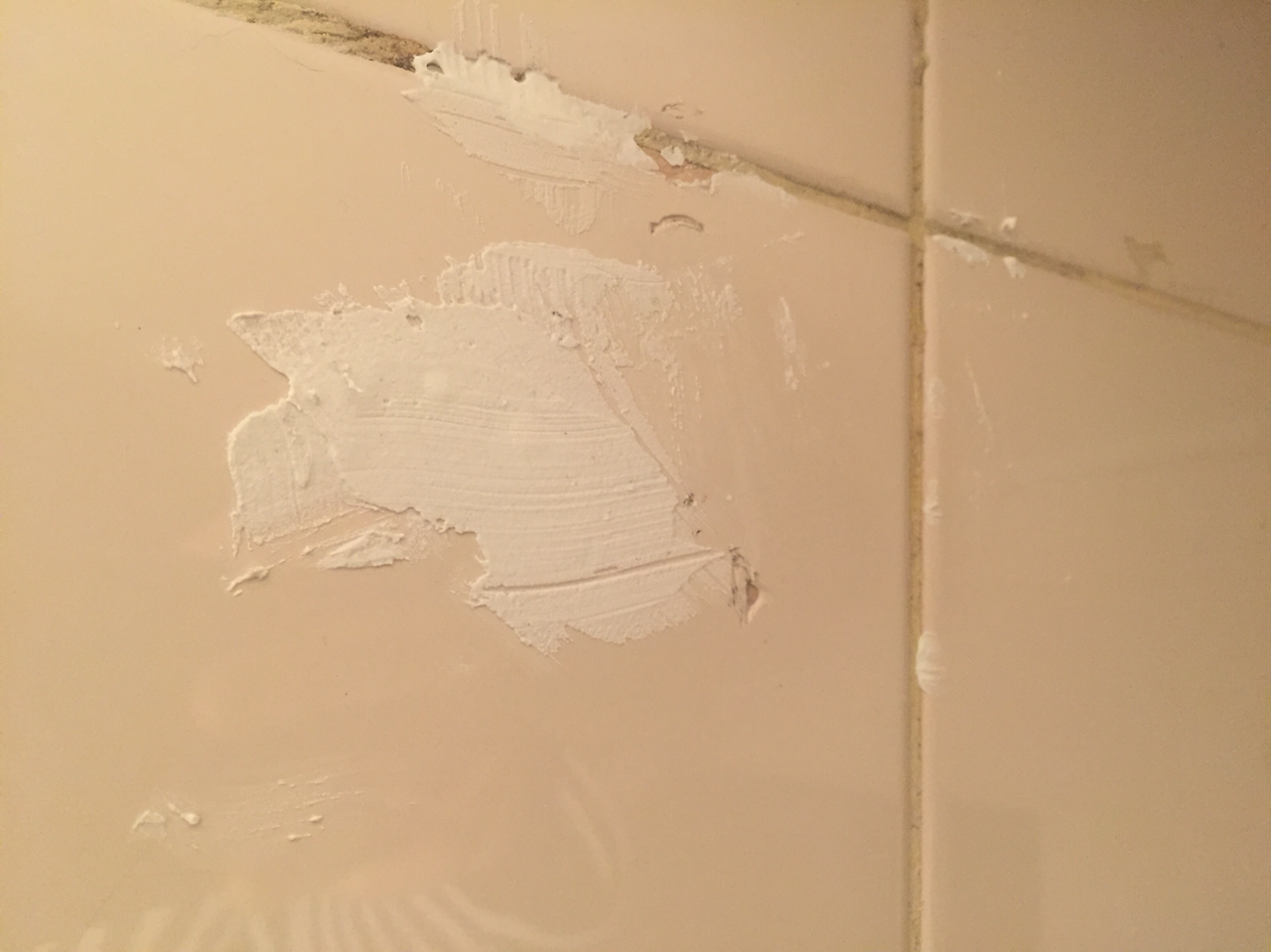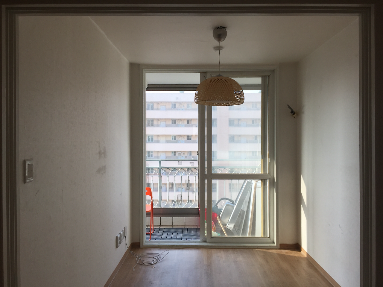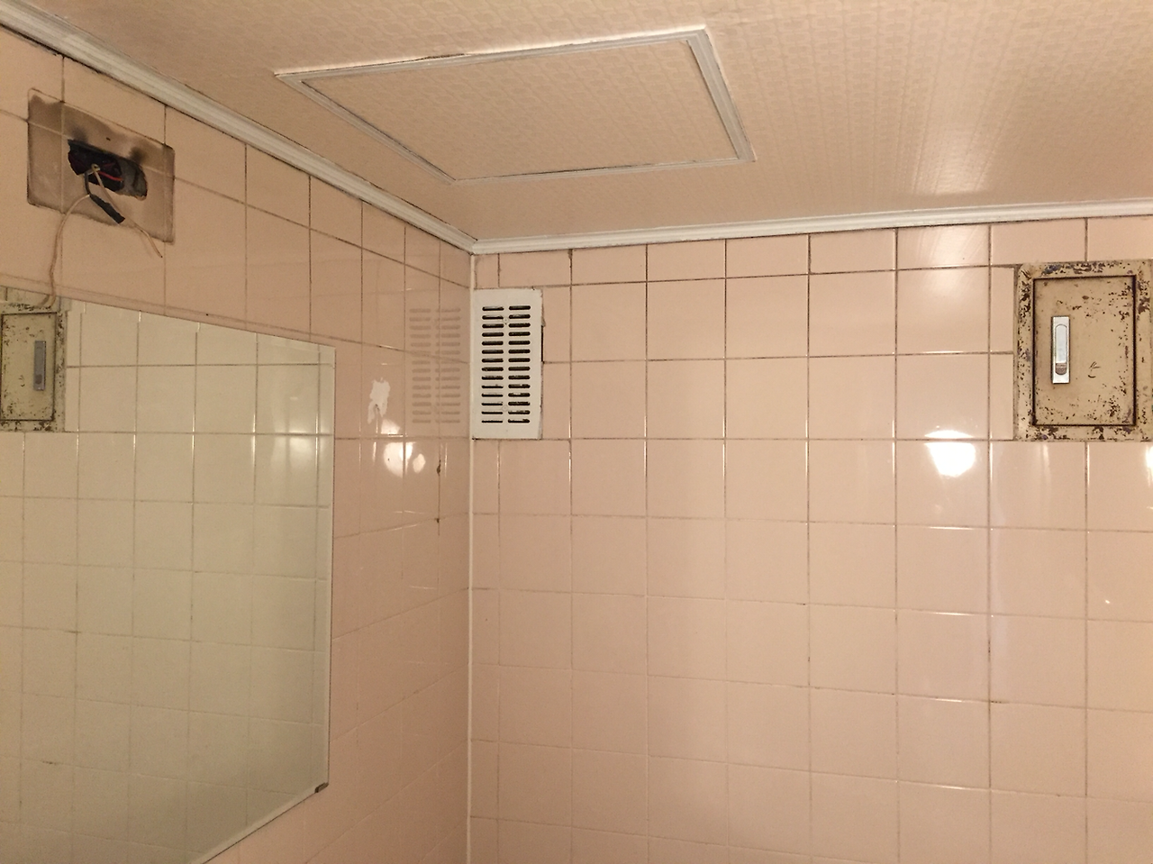 방 페인팅에 이어 욕실과 거실을 바꿔보기로 결정했다. 2년 전 도배를 마친 집이라 크게 흠 될 곳은 없었지만, 거실 역시 시조새같은 형광등 자국과 벽걸이 텔레비전 거치대용 구멍, 시계 거치용이었던 것으로 보이는 못, 벽지 일부에 붙어있던 테이프 등으로 벽 일부가 상한 상태였다. 욕실의 경우 2년 전 도배 작업이 진행될 때 욕조를 떼었다고 들었는데, 그 때 타일을 새로 시공한 것 같다. 하지만 욕조가 있던 높이까지만 새 타일 작업이 진행된 상태여서 욕조 높이 윗쪽에 붙어있던 타일들은 1992년에 시공된 그대로였다. (오마이갓) 물때는 생각보다 많이 끼어있지 않은 상태였으나, 환풍구인것으로 보이는 구멍난 철판과 전기 배선용으로 보이는 작은 철문, 곳곳에 세월의 흔적을 통해 아로새겨진 못구멍 등이 나의 눈살을 찌푸리게 만들었다.