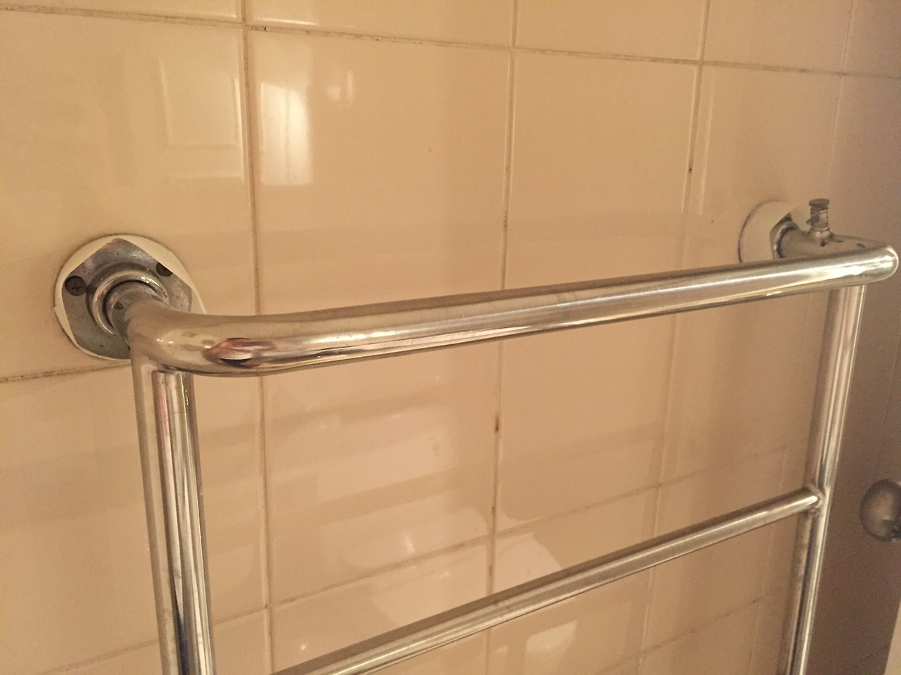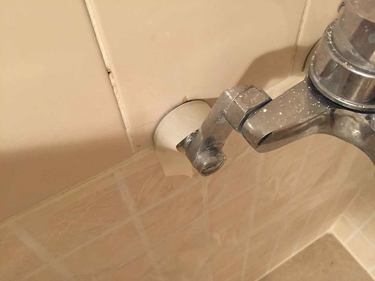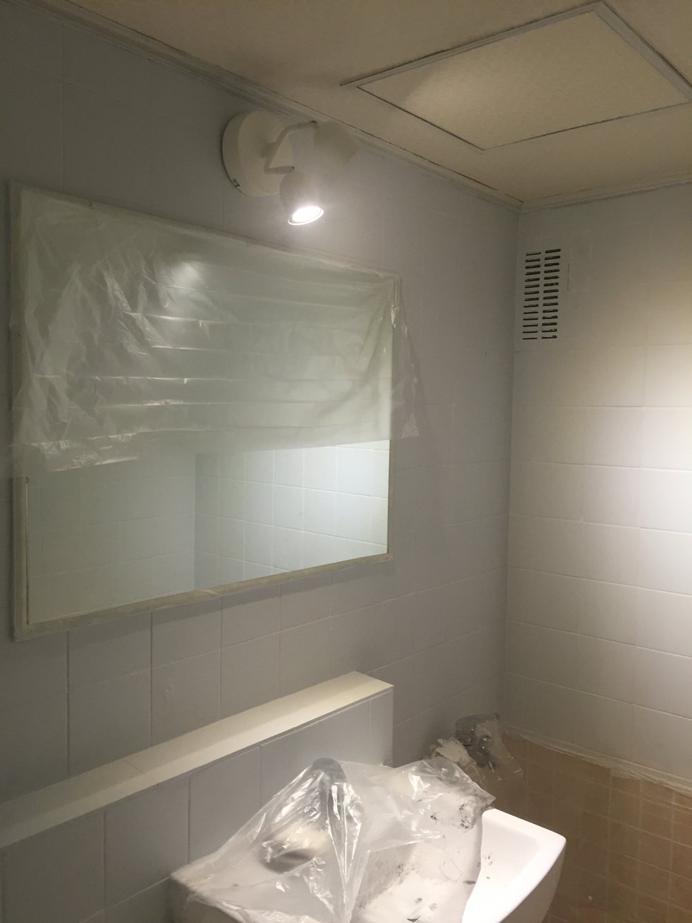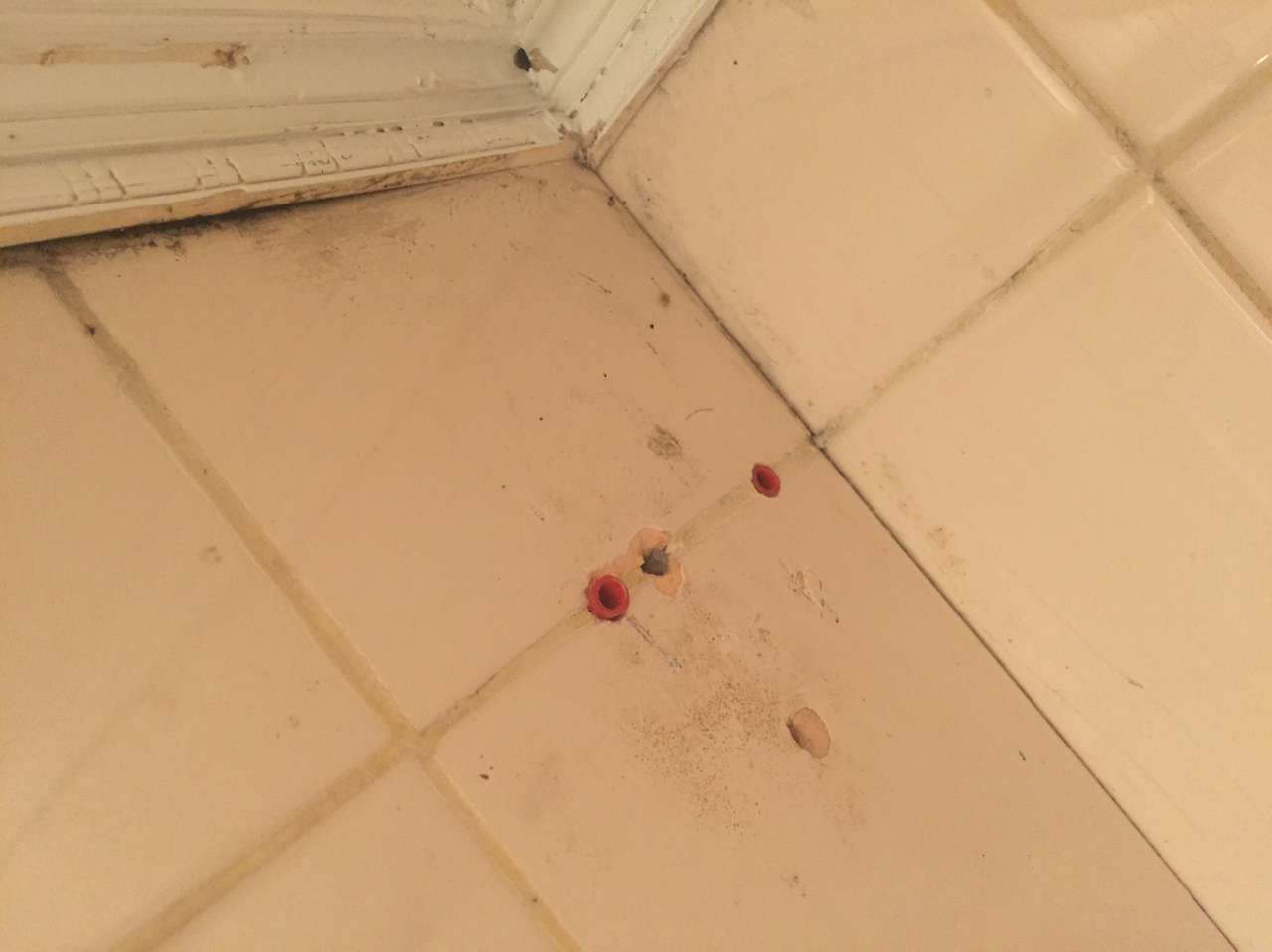 방 페인팅에 이어 욕실과 거실을 바꿔보기로 결정했다. 2년 전 도배를 마친 집이라 크게 흠 될 곳은 없었지만, 거실 역시 시조새같은 형광등 자국과 벽걸이 텔레비전 거치대용 구멍, 시계 거치용이었던 것으로 보이는 못, 벽지 일부에 붙어있던 테이프 등으로 벽 일부가 상한 상태였다. 욕실의 경우 2년 전 도배 작업이 진행될 때 욕조를 떼었다고 들었는데, 그 때 타일을 새로 시공한 것 같다. 하지만 욕조가 있던 높이까지만 새 타일 작업이 진행된 상태여서 욕조 높이 윗쪽에 붙어있던 타일들은 1992년에 시공된 그대로였다. (오마이갓) 물때는 생각보다 많이 끼어있지 않은 상태였으나, 환풍구인것으로 보이는 구멍난 철판과 전기 배선용으로 보이는 작은 철문, 곳곳에 세월의 흔적을 통해 아로새겨진 못구멍 등이 나의 눈살을 찌푸리게 만들었다.