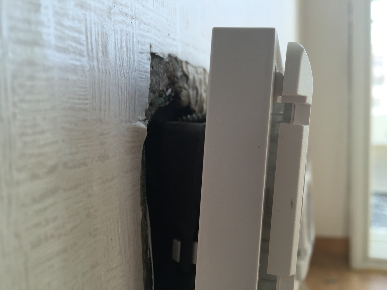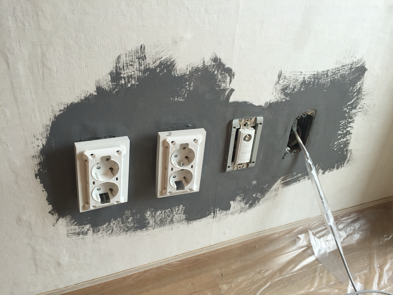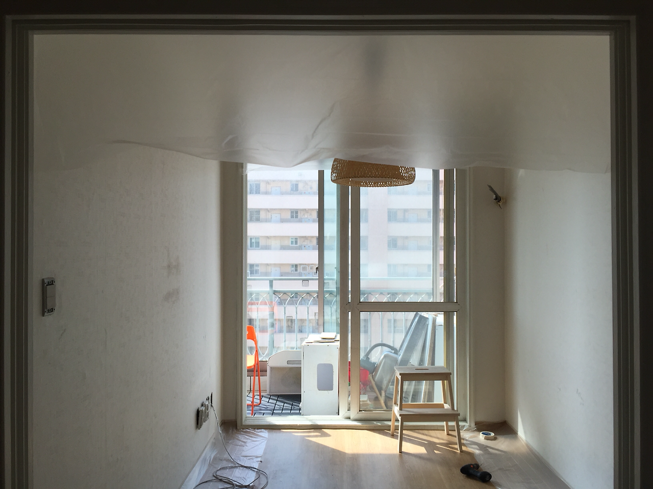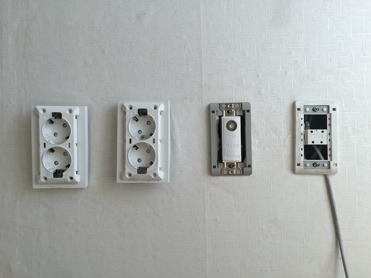 거실의 경우, 벽에 전등 스위치와 전기 플러그 등이 존재하기 때문에 이들의 커버를 벗겨준다. 할 수 있다면 벽체와 분리해두는 것이 좋다.