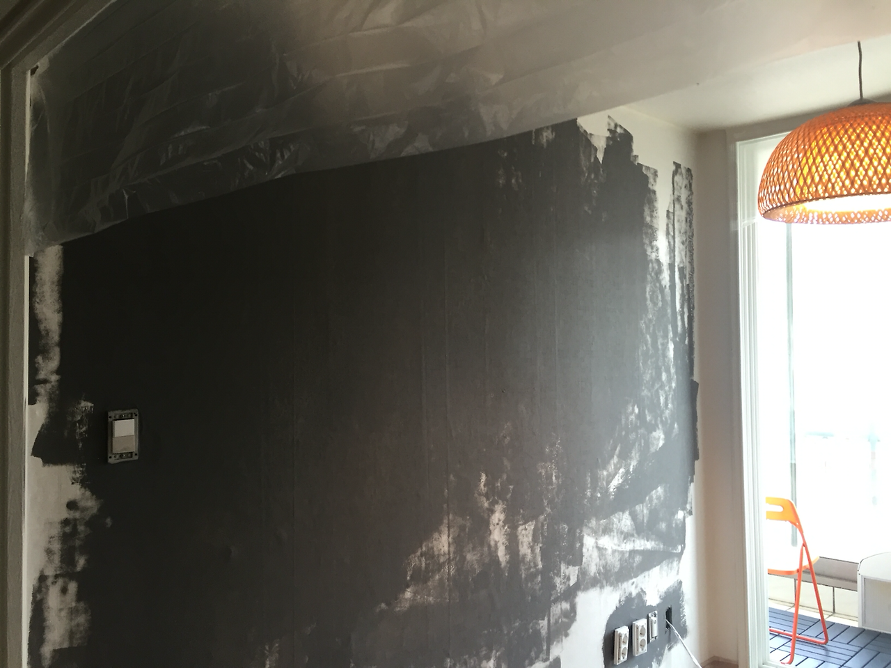 거실 역시 예외가 아니어서 벽걸이 텔레비전을 고정하던 타공 위치에 벽체 메움용 반죽을 넣고 건조를 위해 한동안 놔두었다. 이를 그대로 놔두어도 되지만 평탄한 벽면처럼 보이려면 연마 작업을 거쳐야 한다. 전기로 움직이는 도구를 이용할 수도 있지만, 이번 경우에 시공할 부분이 그렇게 많진 않아서 사포로 갈음하기로 하고 열심히 문질러댔다.