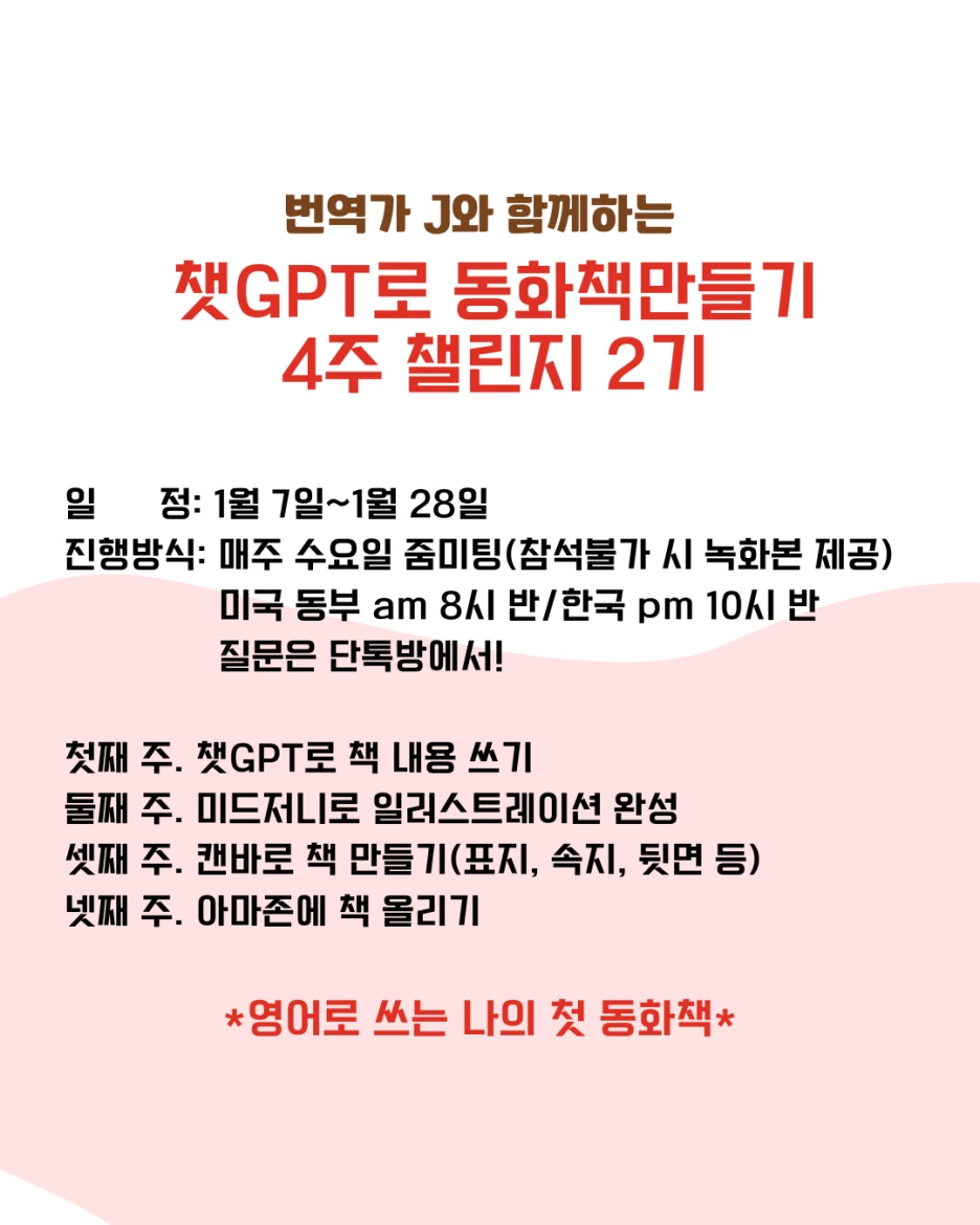 챗GPT로 동화책 쓰기 지난 번에 반응이 너무 좋으셔서 이번에 2기도 진행하게 되었습니다.