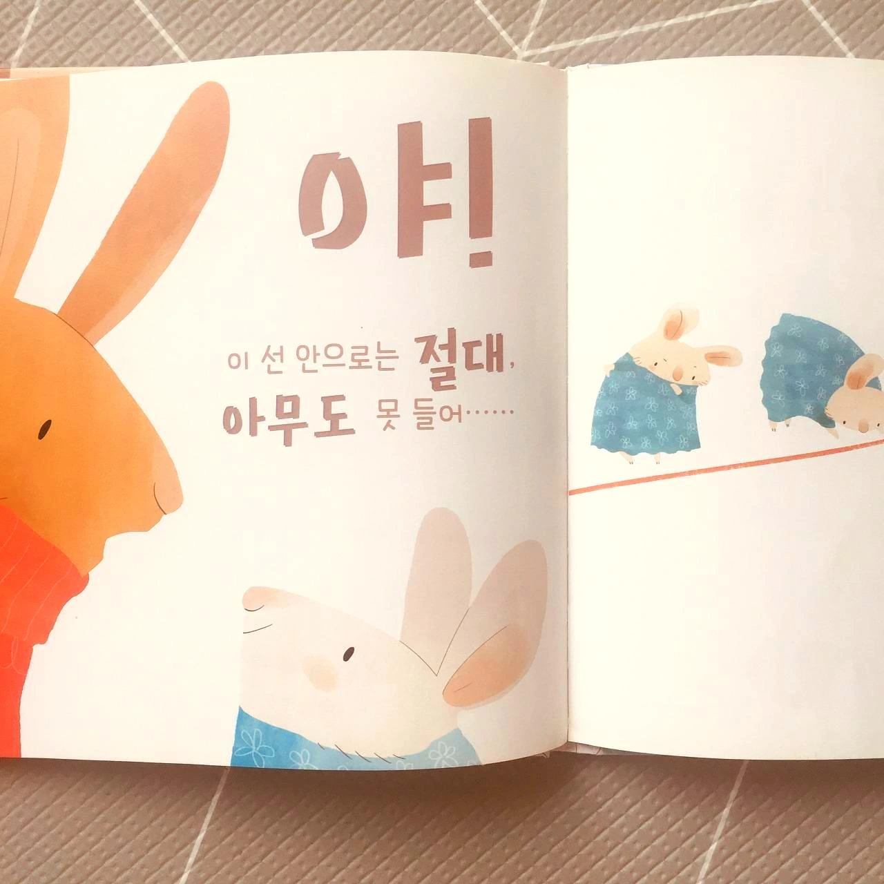 이 토끼들은 아이의 눈에도 매력적으로 보이는지, 내가 놓치고 지나친 토끼에도 아이는 눈길을 주고 질문을 해댄다. 그래서 처음에 이 책을 아이에게 읽어줬을 때에는 하도 꼼꼼히 그림을 뜯어보는 아이 때문에 글이 별로 없음에도 불구하고 한 장을 넘기기가 쉽지 않았다. 정답처럼 정해진 교훈만을 취하려는 어른과는 달리, 아이는 자기만의 방식으로 그림을 해석하려 했고 그렇게 자그마치(?) 역자인 나랑 티격태격하다 보니 진도가 나가지 않았던 것.