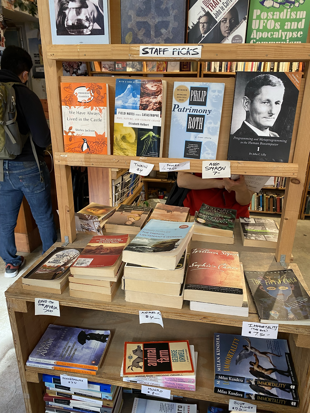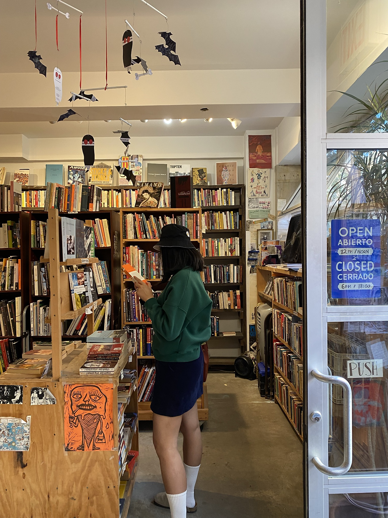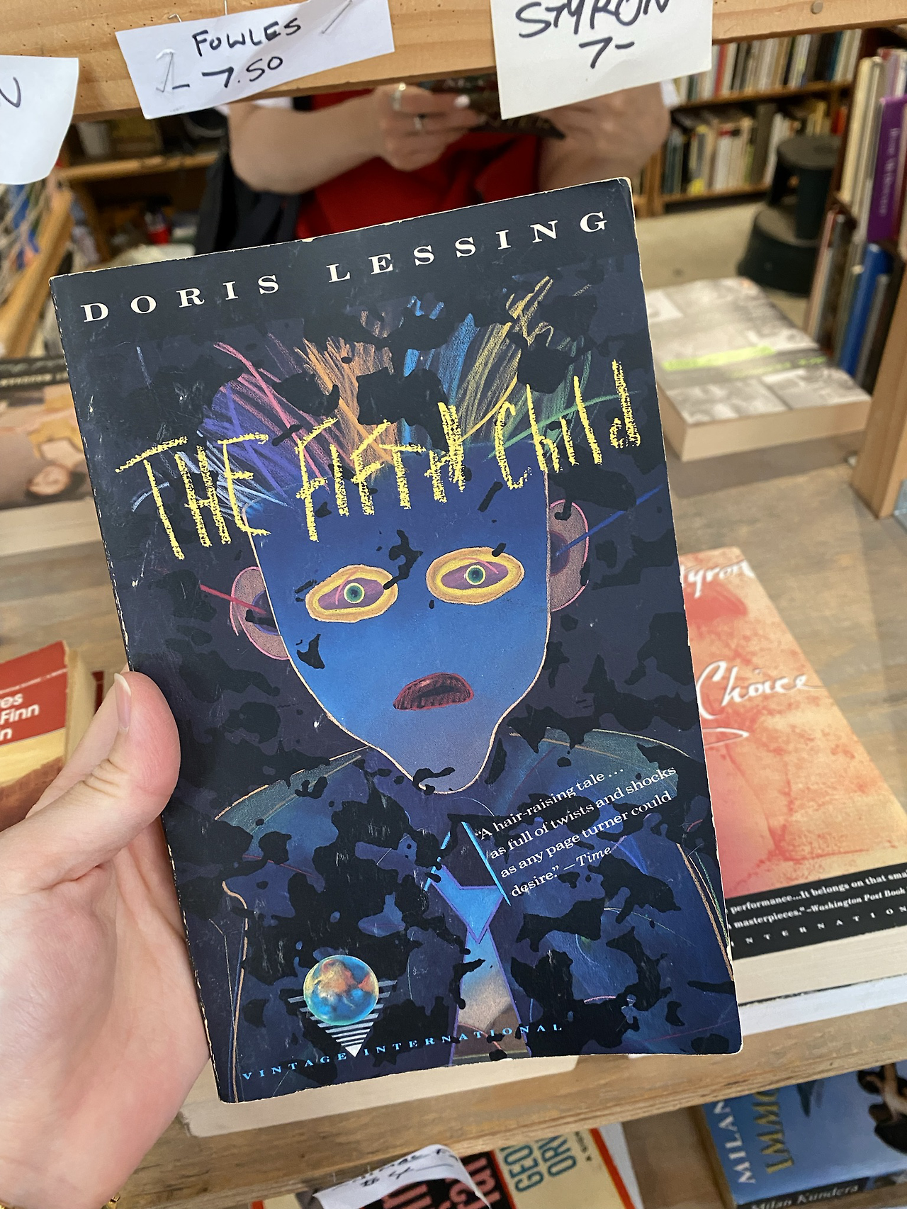 이곳은 양질의 중고서적을 저렴한 가격에 판매하는 자그마한 헌책방으로 주로 소설, 영화, 철학 작품을 다루고 있지만 건축, 디자인, 시, 희곡, 역사, 외국어(한참을 찾아봤는데 한국어 책은 없었다), 그래픽 소설 등도 갖추고 있다. 들어가자마자 마주하는 조그만 평대에는 조지 오웰의 <동물 농장> 같은 유명한 소설들의 빈티지 버전이 저렴한 가격에 판매되고 있다. 이번에 내 눈에 띈 표지는 도레스 레싱의 <다섯 번째 아이>. 핼러윈 분위기에 딱 맞는 표지가 날 좀 어서 데려가라고 한다. 그렇담 안 사갈 수 없지!