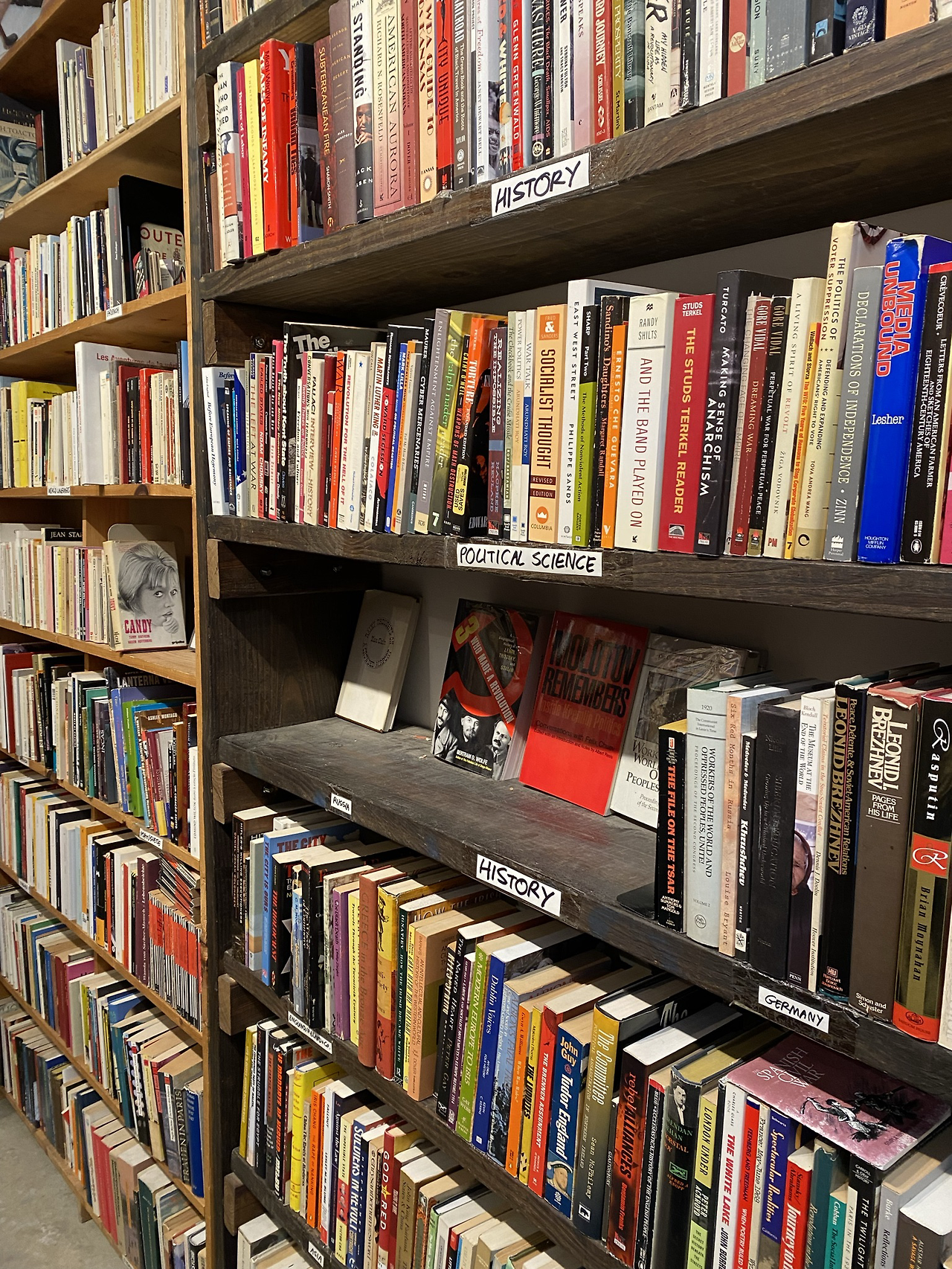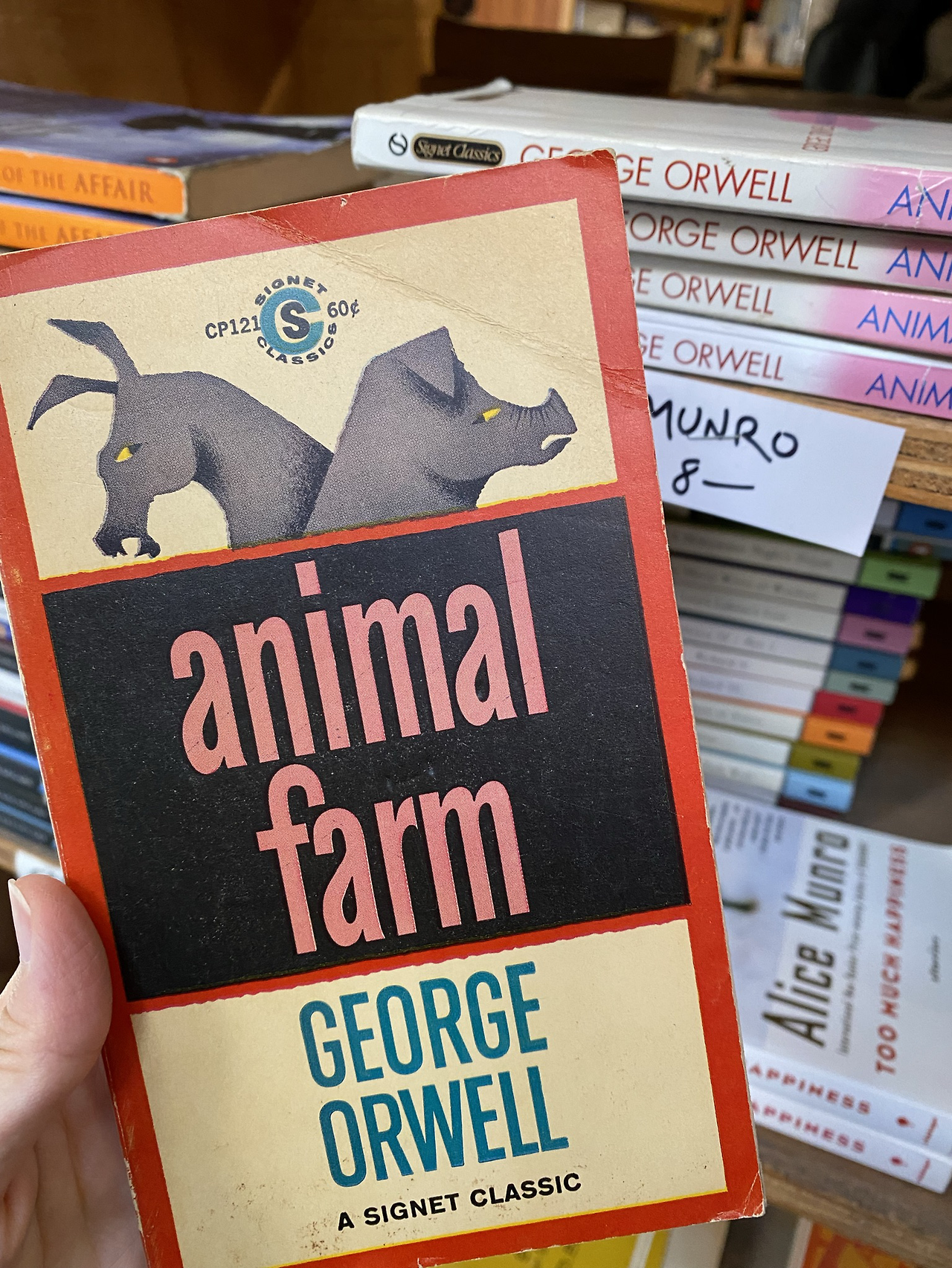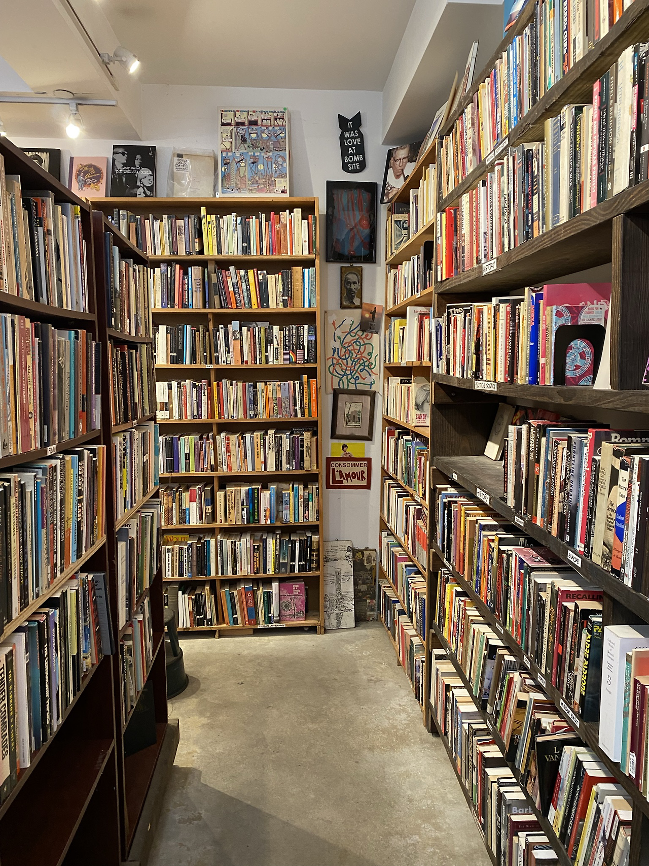 이곳은 양질의 중고서적을 저렴한 가격에 판매하는 자그마한 헌책방으로 주로 소설, 영화, 철학 작품을 다루고 있지만 건축, 디자인, 시, 희곡, 역사, 외국어(한참을 찾아봤는데 한국어 책은 없었다), 그래픽 소설 등도 갖추고 있다. 들어가자마자 마주하는 조그만 평대에는 조지 오웰의 <동물 농장> 같은 유명한 소설들의 빈티지 버전이 저렴한 가격에 판매되고 있다. 이번에 내 눈에 띈 표지는 도레스 레싱의 <다섯 번째 아이>. 핼러윈 분위기에 딱 맞는 표지가 날 좀 어서 데려가라고 한다. 그렇담 안 사갈 수 없지!