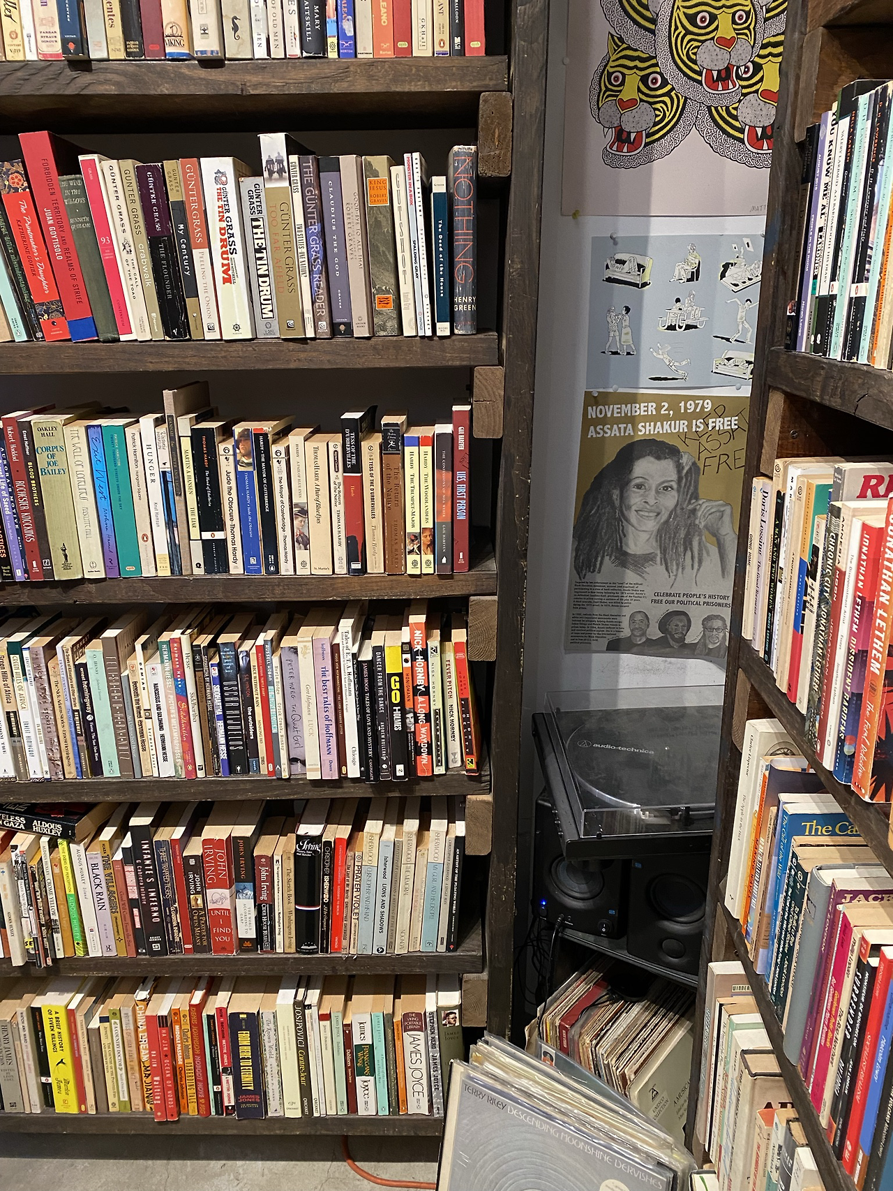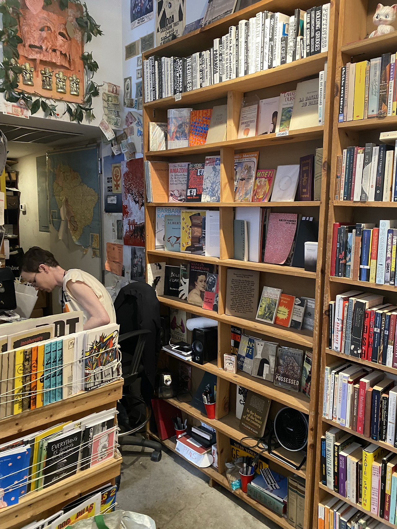 그런데 가게 안에서 흘러나오는 음악이 심상치 않다. 한쪽 구석에 놓인 레코드에서 흘러나오는 펑키한 음악이 작은 공간을 가득 메우며 책을 마구 사고 싶게 만든다. 서점이면 차분한 음악이 흘러나오기를 기대하지만 이곳은 다르다. 책장을 샅샅이 훑는 내 고개는 어느새 까딱거리고 있고 무언가를 사고 싶은 욕망이 마구 분출한다. 아무래도 주인장의 전략인가 보다. 쇼핑몰 같은 곳에 가면 일부러 구매욕을 부추기기 위해 빠른 음악을 틀어놓는다던데 그런 의도인가.