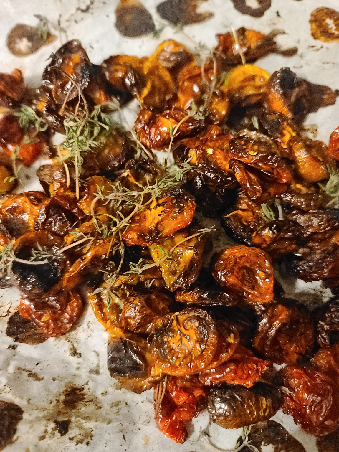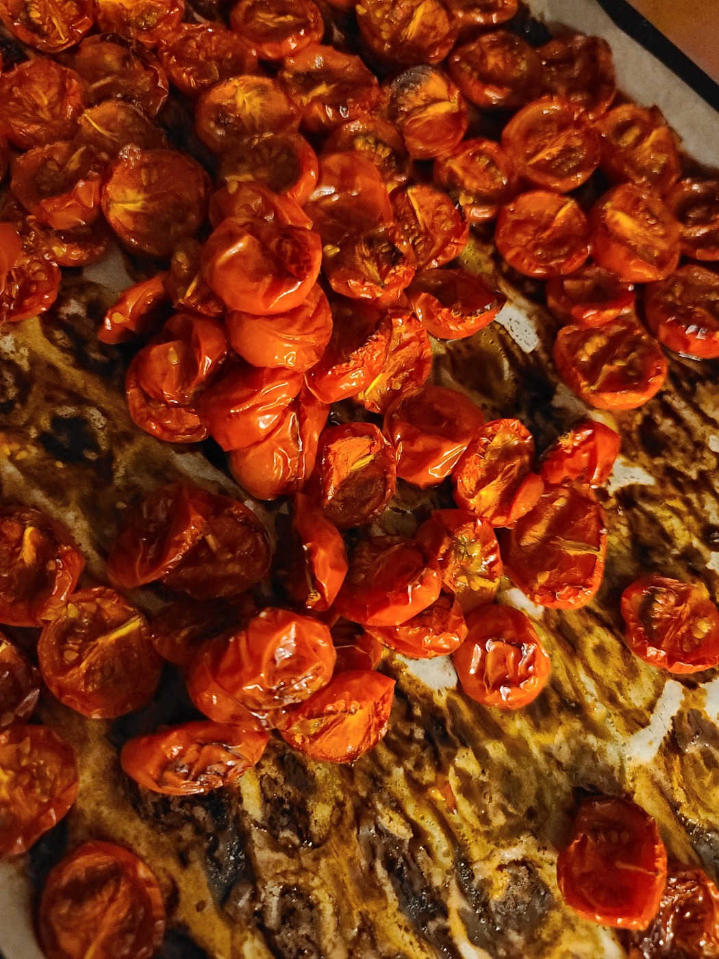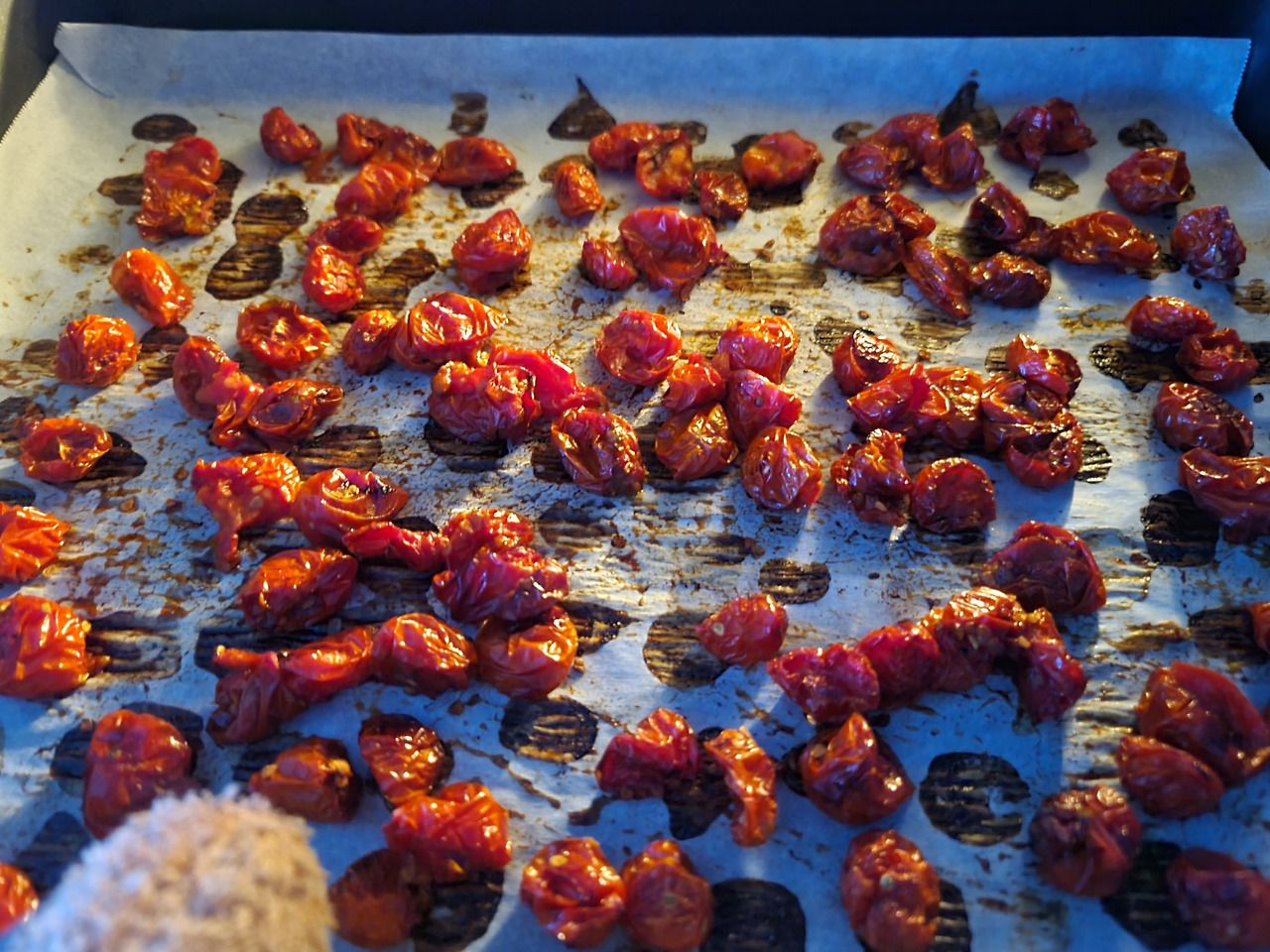 - 방울토마토 사이즈와 오븐 사양에 따라 온도와 시간을 조절한다. (토마토 사이즈와 오븐 온도에 따라 1시간 반~3시간 정도 걸린다.)